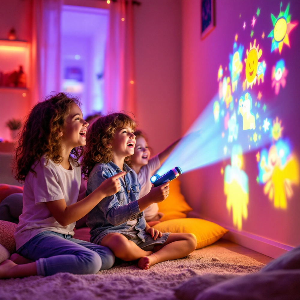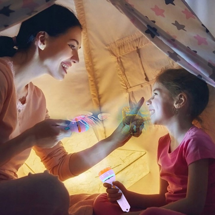 Latarka-projektor w formie poręcznej zabawki, idealna do dziecięcych dłoni,