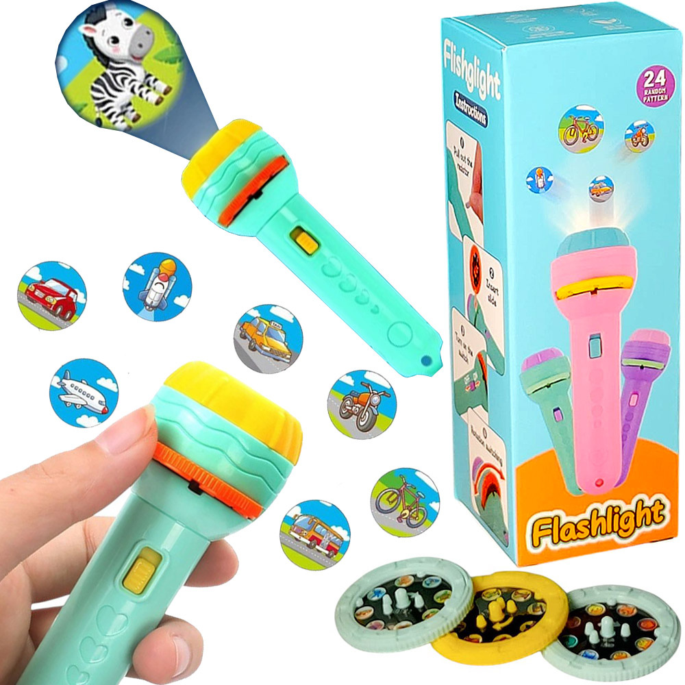 - Latarka projektor dla dzieci – ręczny rzutnik slajdów /obrazków, dziecięca edukacyjna zabawka