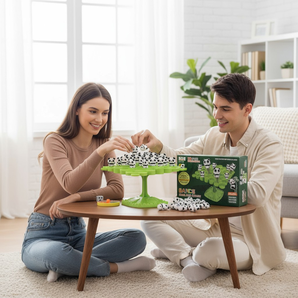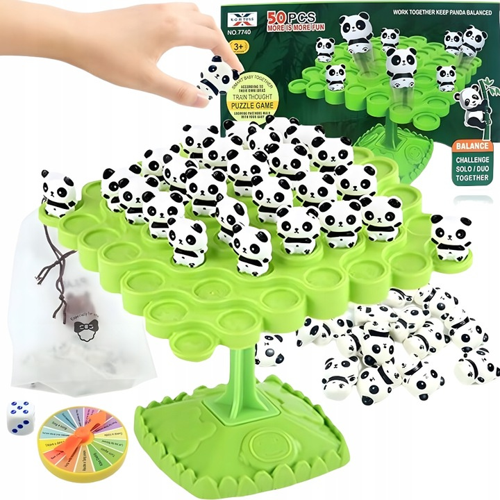 • Balansujące Pandy – gra zręcznościowa i logiczna, idealna dla dzieci 3+, rozwija koordynację, myślenie strategiczne, śmieszna i wciągająca rozgrywka dla całej rodziny.