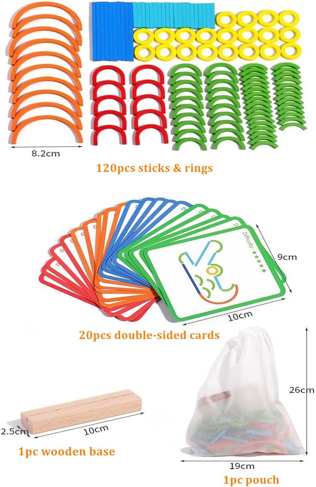 Układanka Montessori Sticks and Rings z drewnianymi patyczkami i pierścieniami. Edukacyjna zabawka rozwijająca kreatywność, logiczne myślenie i motorykę. Idealny prezent dla dzieci 3 +.