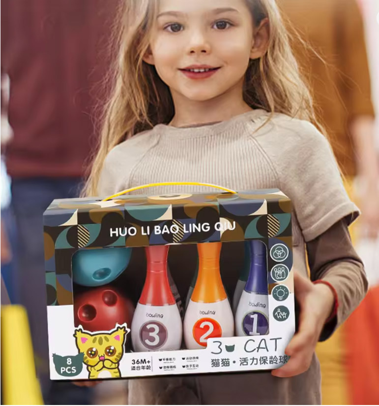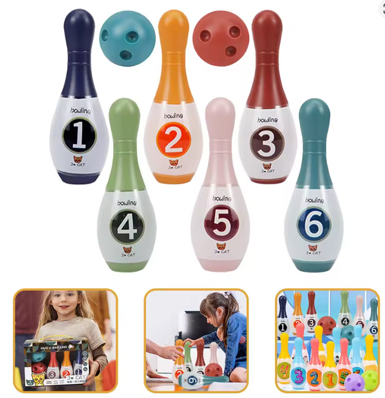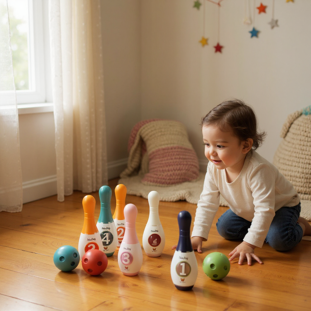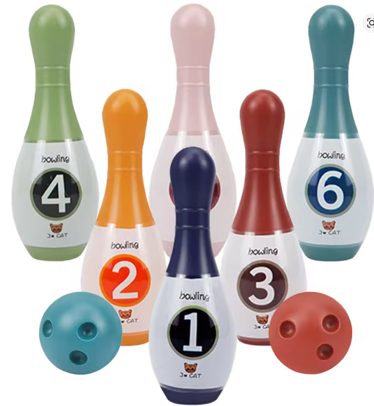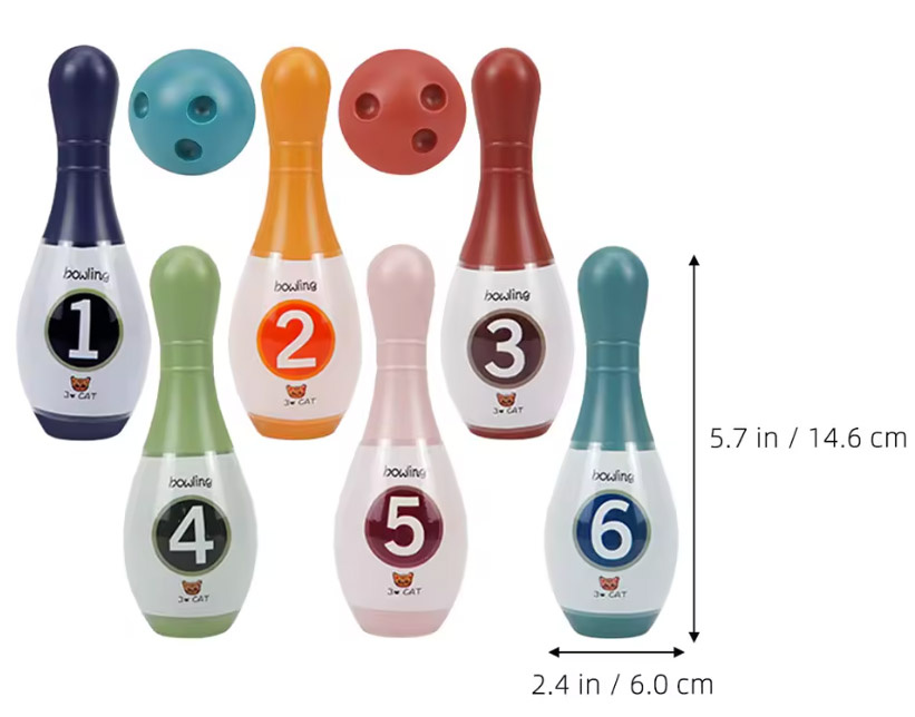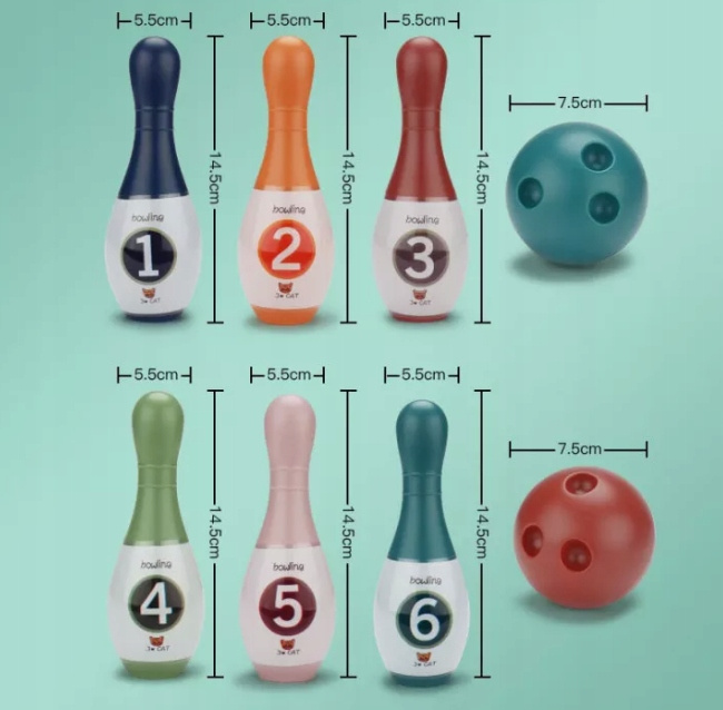 • 2x Kula do kręgli: wystarczająco lekka, by dziecko mogło utrzymać ją w dłoni i rzucić, ale solidna, by się nie odkształcała.