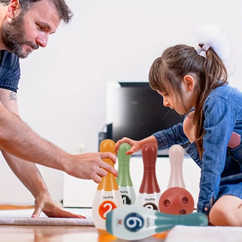• Kolorowe oznaczenia i cyfry na kręglach sprzyjają wczesnej edukacji: dziecko uczy się liczyć, rozpoznawać kolory, a także rozwijać zdolności poznawcze przez porównywanie, ocenianie i strategię – np. ile kręgli zostało po rzucie.