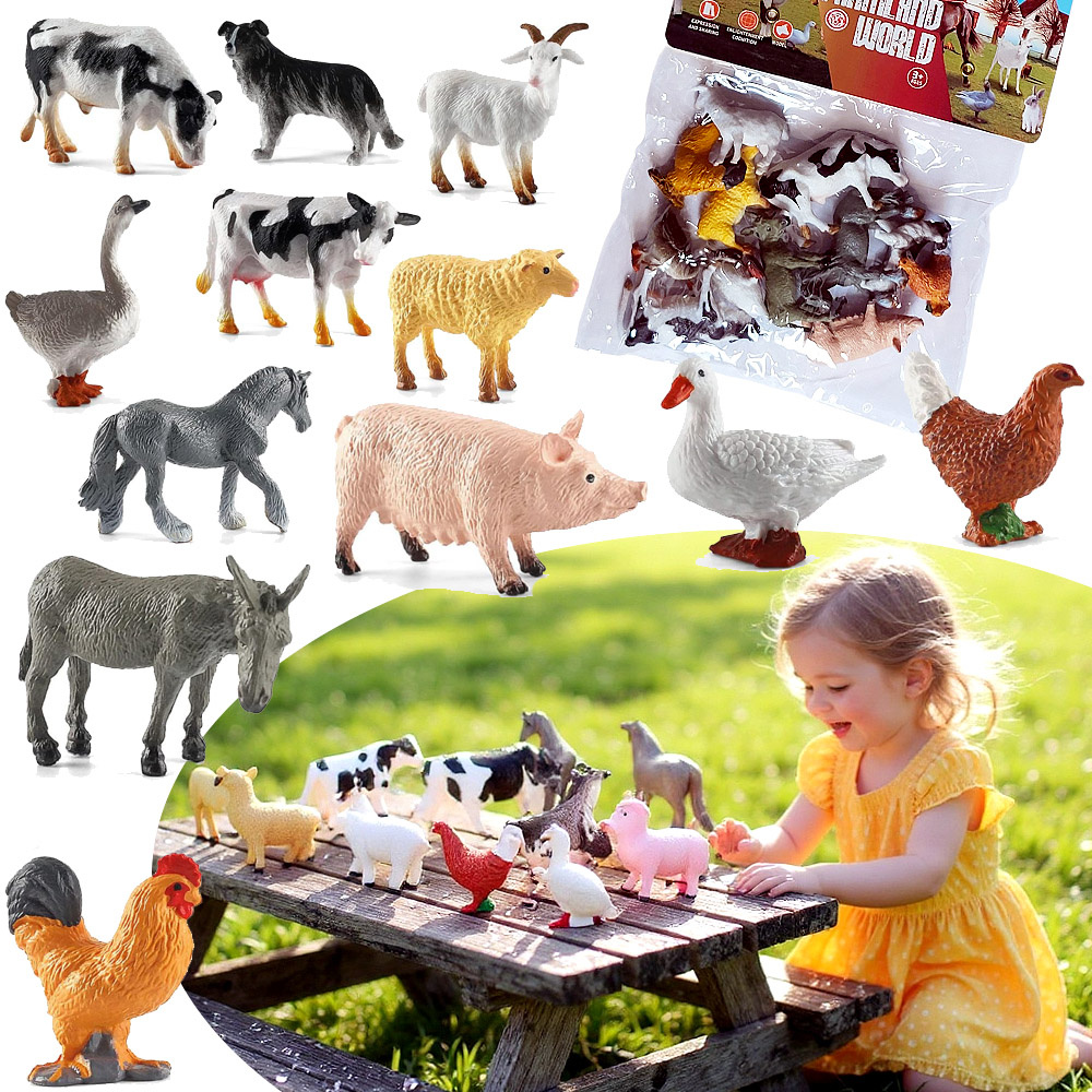 • Poznaj zestaw farmy: 12 figurek zwierząt domowych w opakowaniu, certyfikat CE, wiek 3+. Edukacyjna zabawa w gospodarstwo – idealny prezent dla chłopców i dziewczynek.