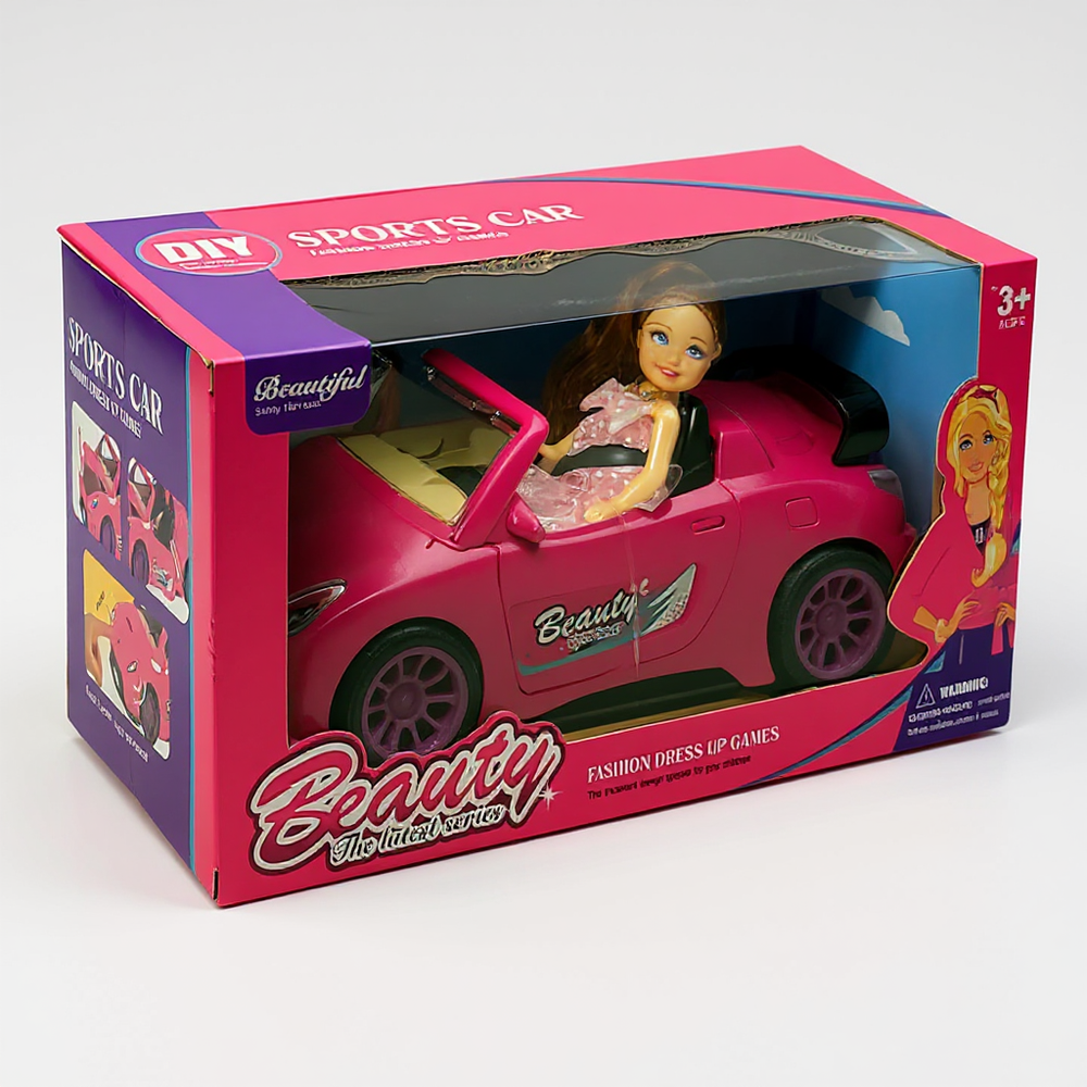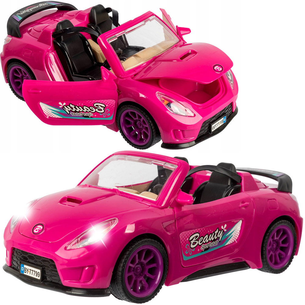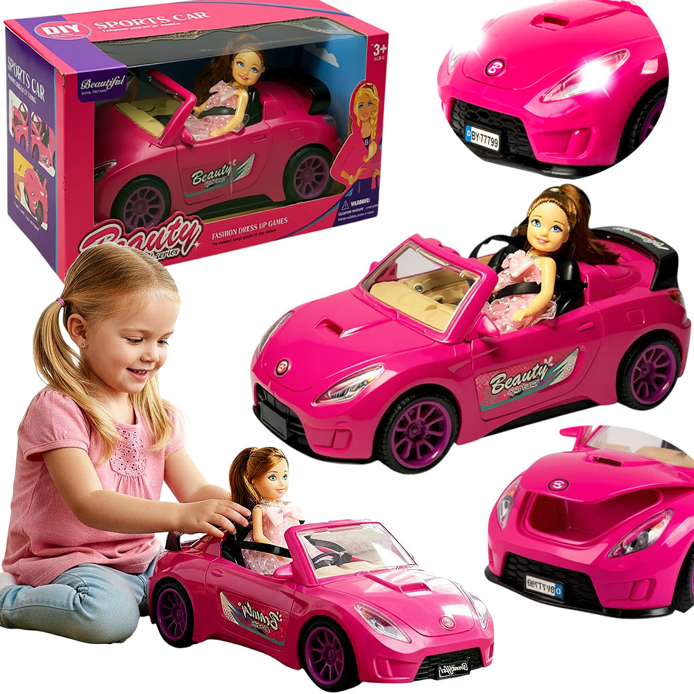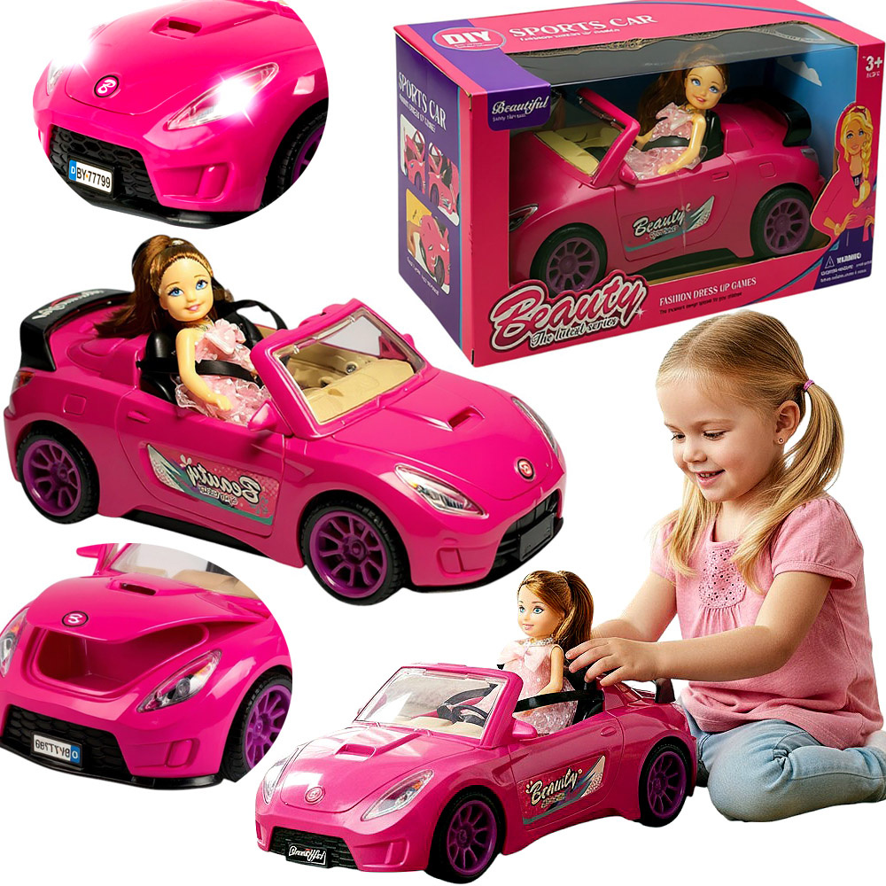 Piękny duży kabriolet auto dla lalek z lalką – zestaw Beauty, różowy samochód z efektami, idealny prezent dla dziewczynki 3+, komplet Fashion Car do zabawy i aranżacji pokoju.