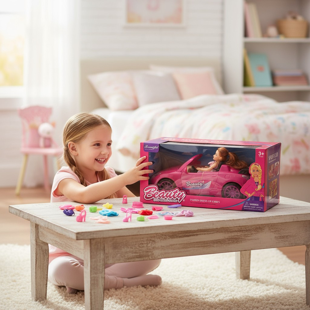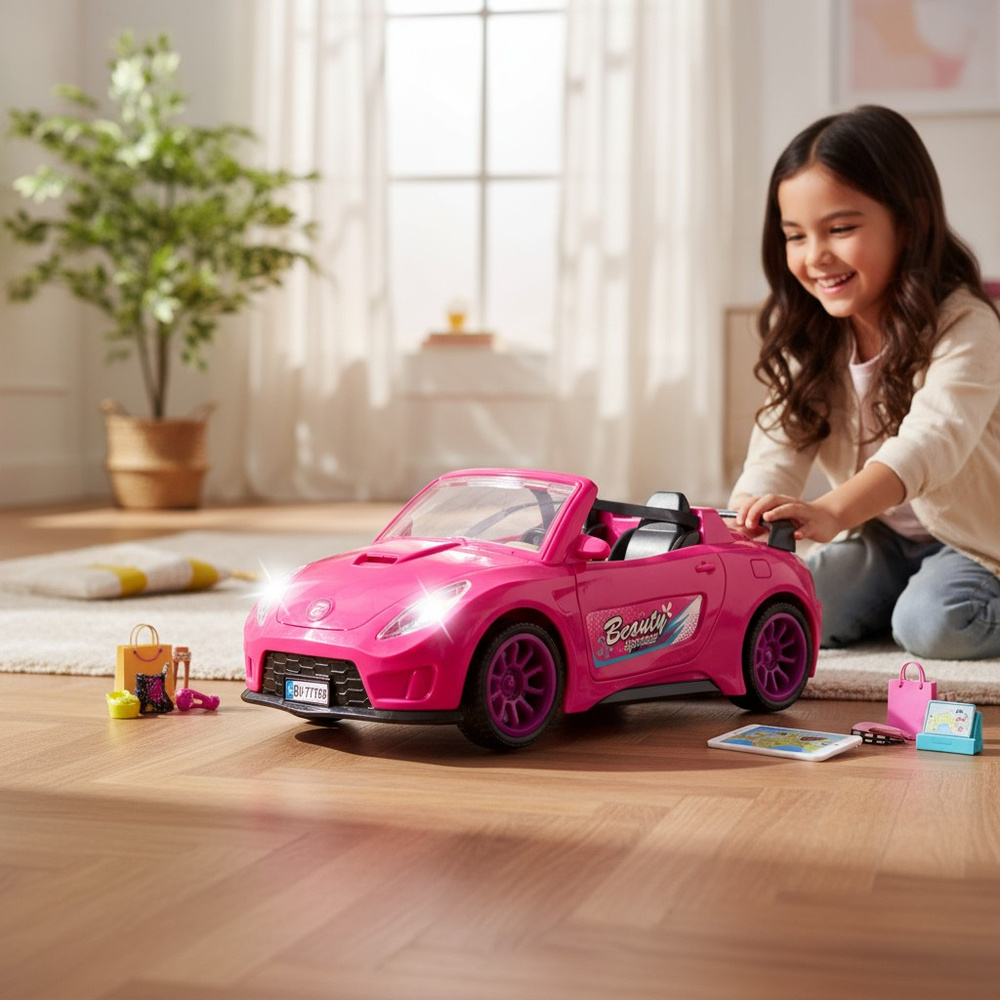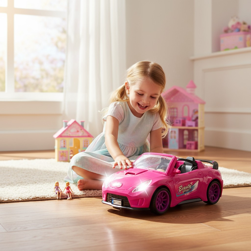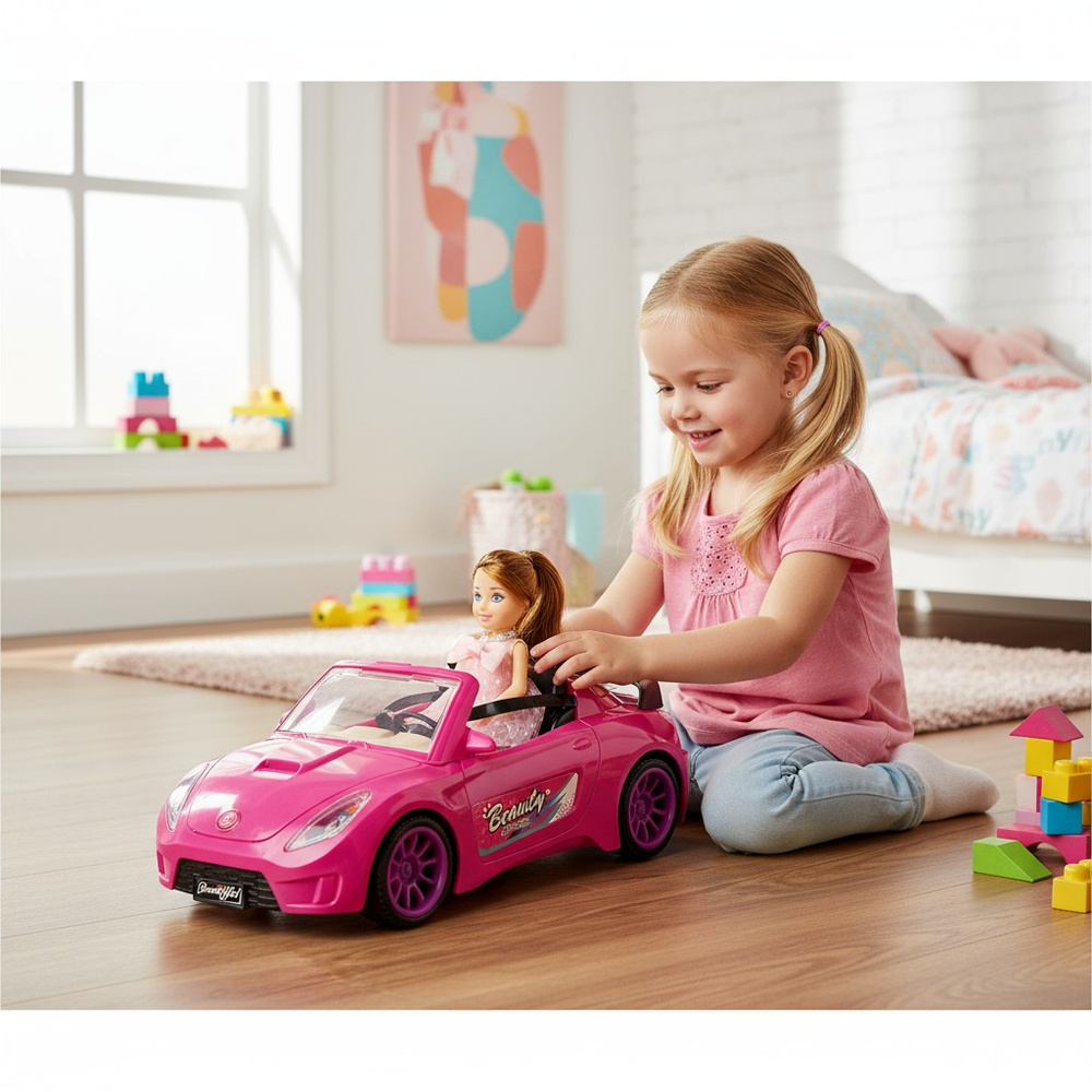 - To kompletny zestaw: piękny różowy kabriolet + lalka który daje dużo możliwości zabawy, rozwija kreatywność i manualność dziecka, jest bezpieczny i atrakcyjny wizualnie. Auto wygląda stylowo w pokoju dziecięcym.