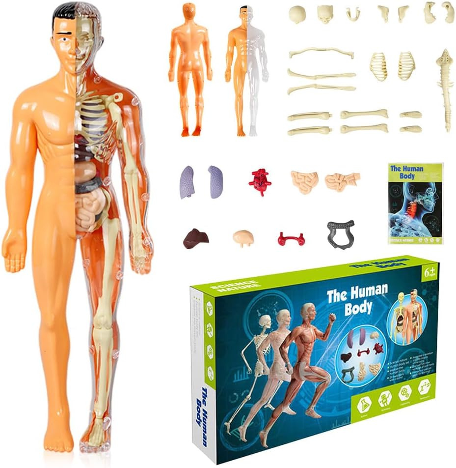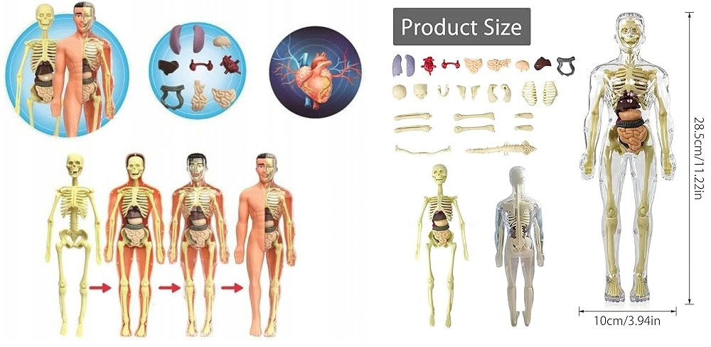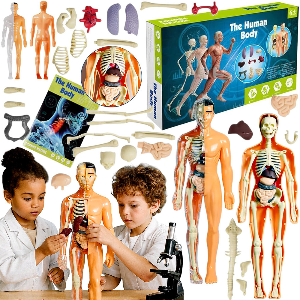 - Interaktywny model anatomiczny 3D ludzkiego ciała: szkielet + narządy wewnętrzne, wyjmowane części, edukacyjna zabawka dla dzieci od 6 lat. Doskonały do nauki anatomii, szkoły, domu.