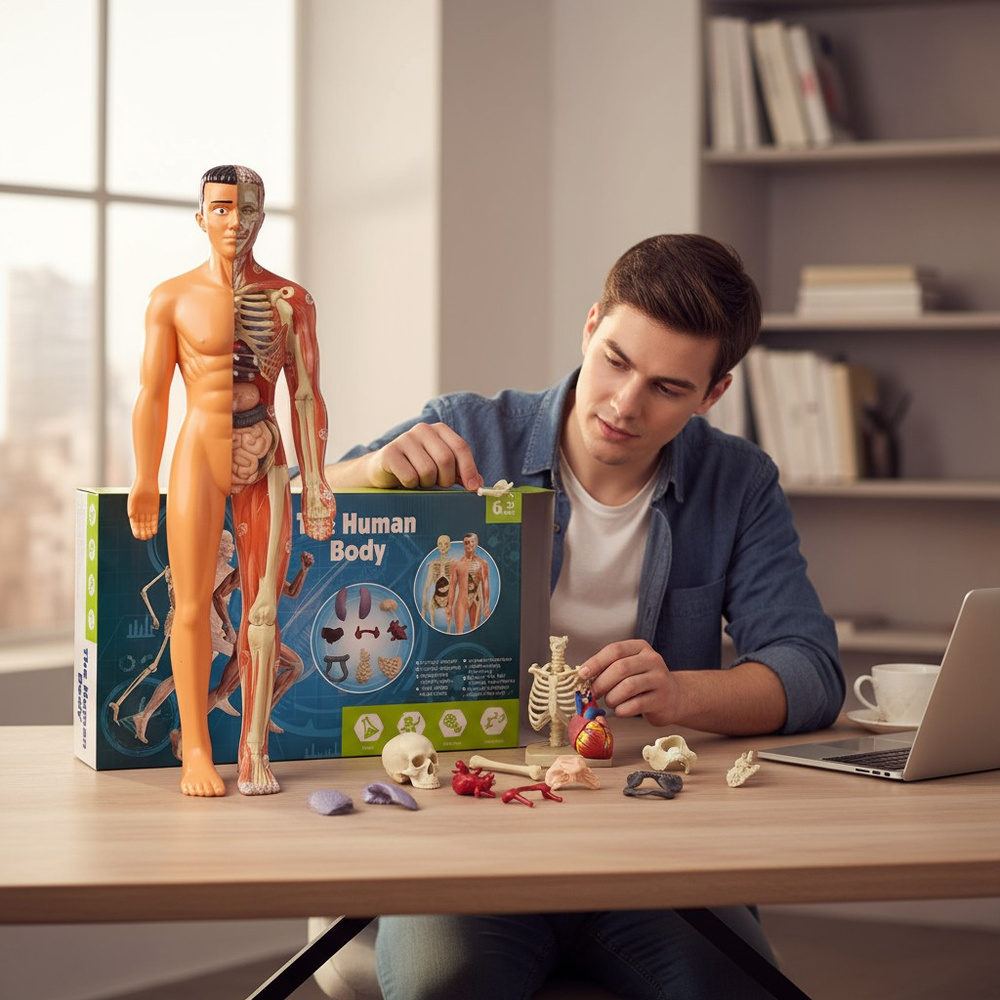Model anatomiczny 3D ludzkiego ciała to nie tylko zabawka - to interaktywna pomoc edukacyjna łącząca naukę i zabawę. Dzięki niemu dziecko (lub uczeń) może poznać budowę człowieka, zobaczyć relacje między kostnym szkieletem a narządami wewnętrznymi. Taka forma nauki przez dotyk i manipulację wspiera zapamiętywanie lepiej niż statyczne grafiki czy plakaty.