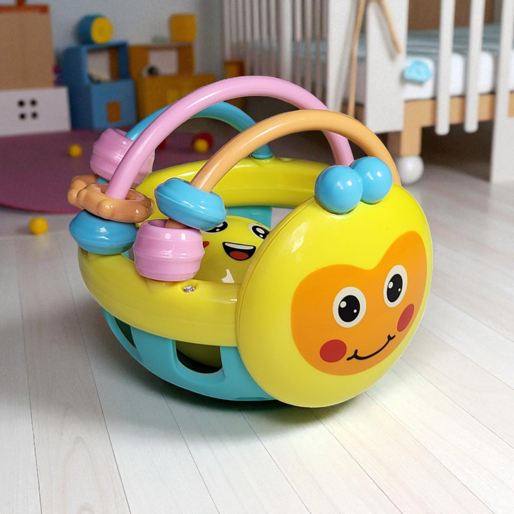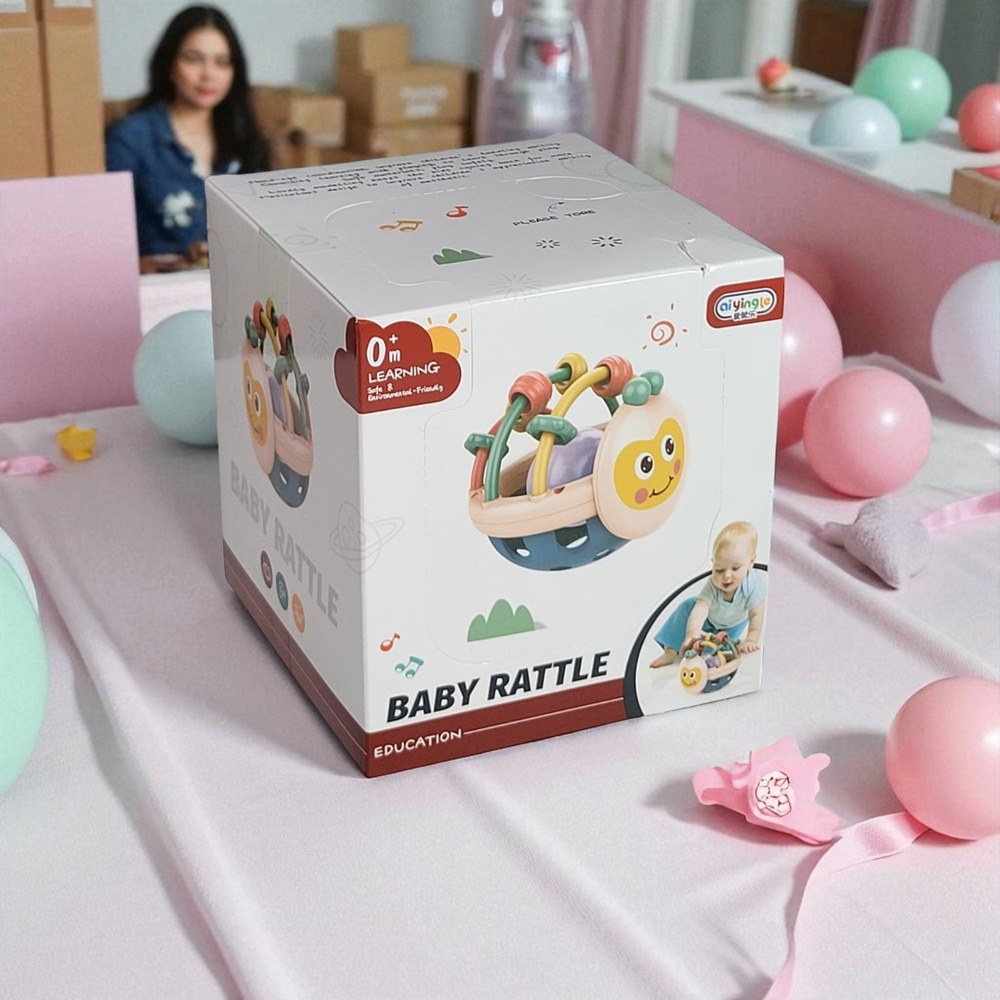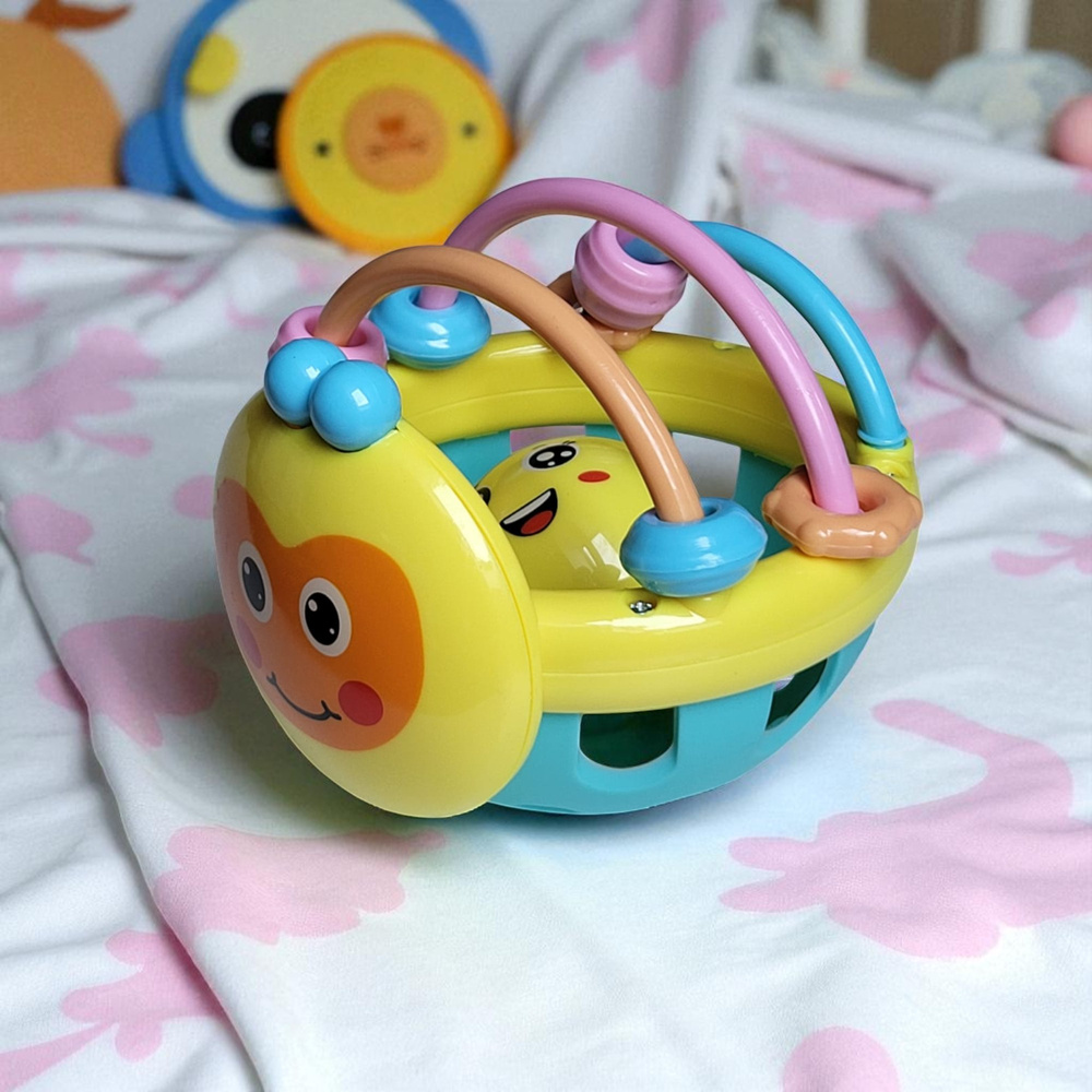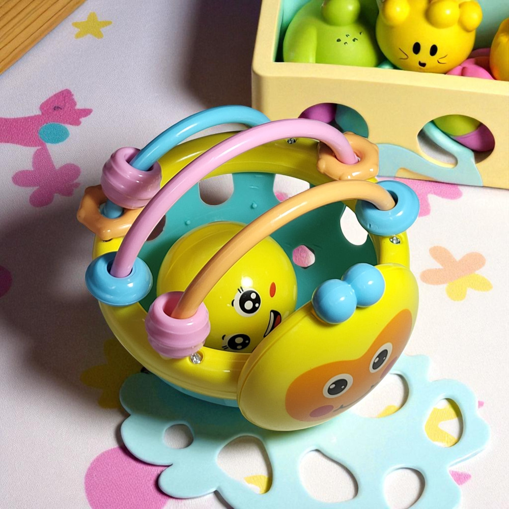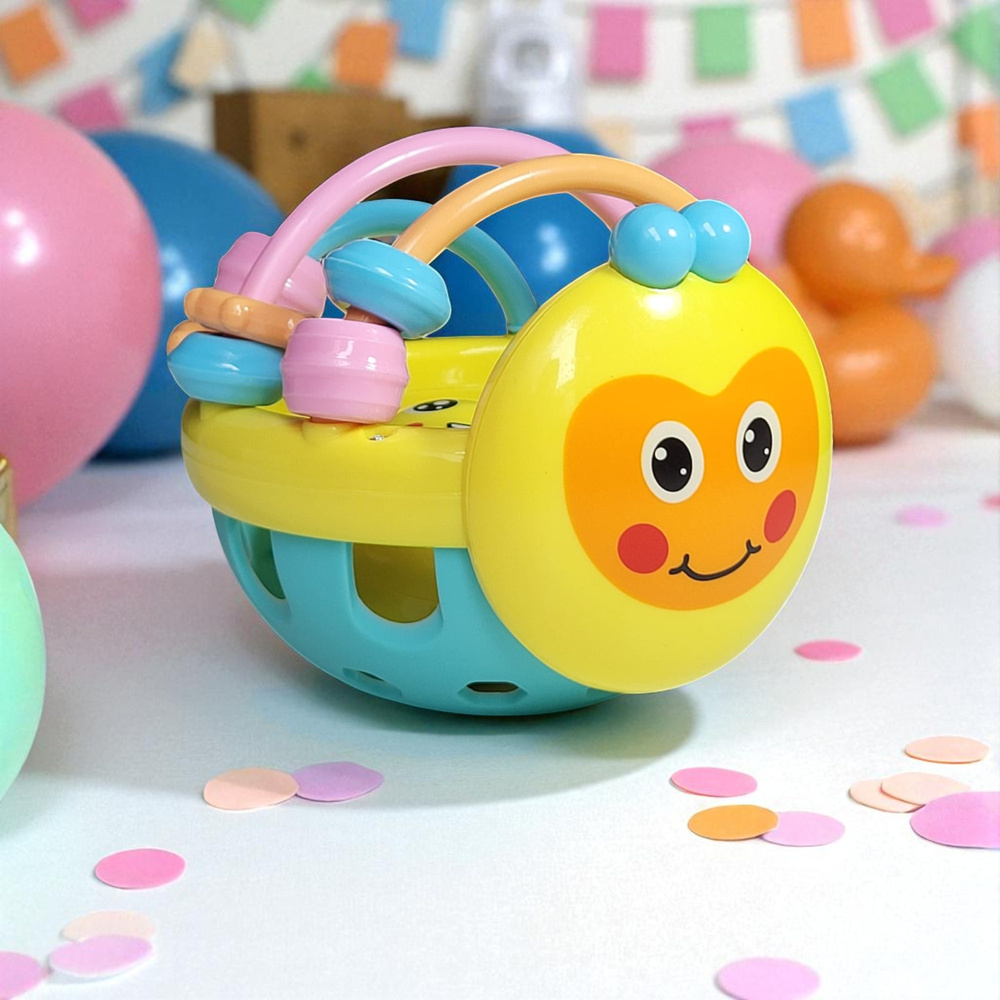 • Zabawka dla niemowlaka: kolorowa grzechotka w formie kuli, pełni także funkcję gryzaka – sensoryczna, bezpieczna, stymuluje zmysł dotyku, wzroku i słuchu. Idealna na prezent dla najmłodszych.
