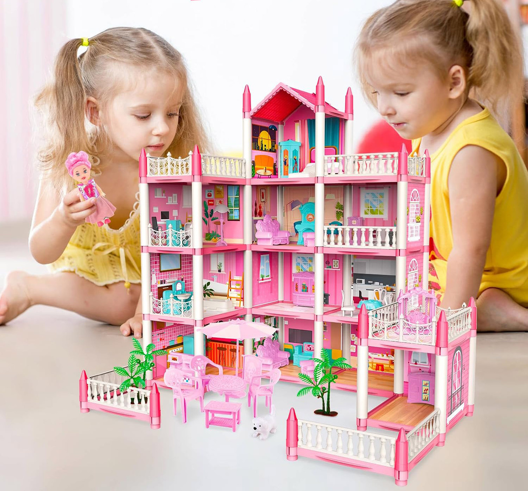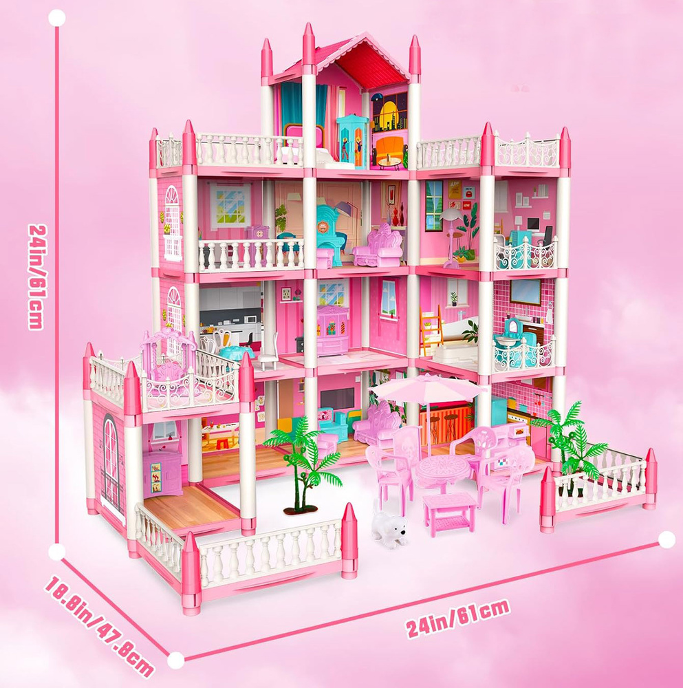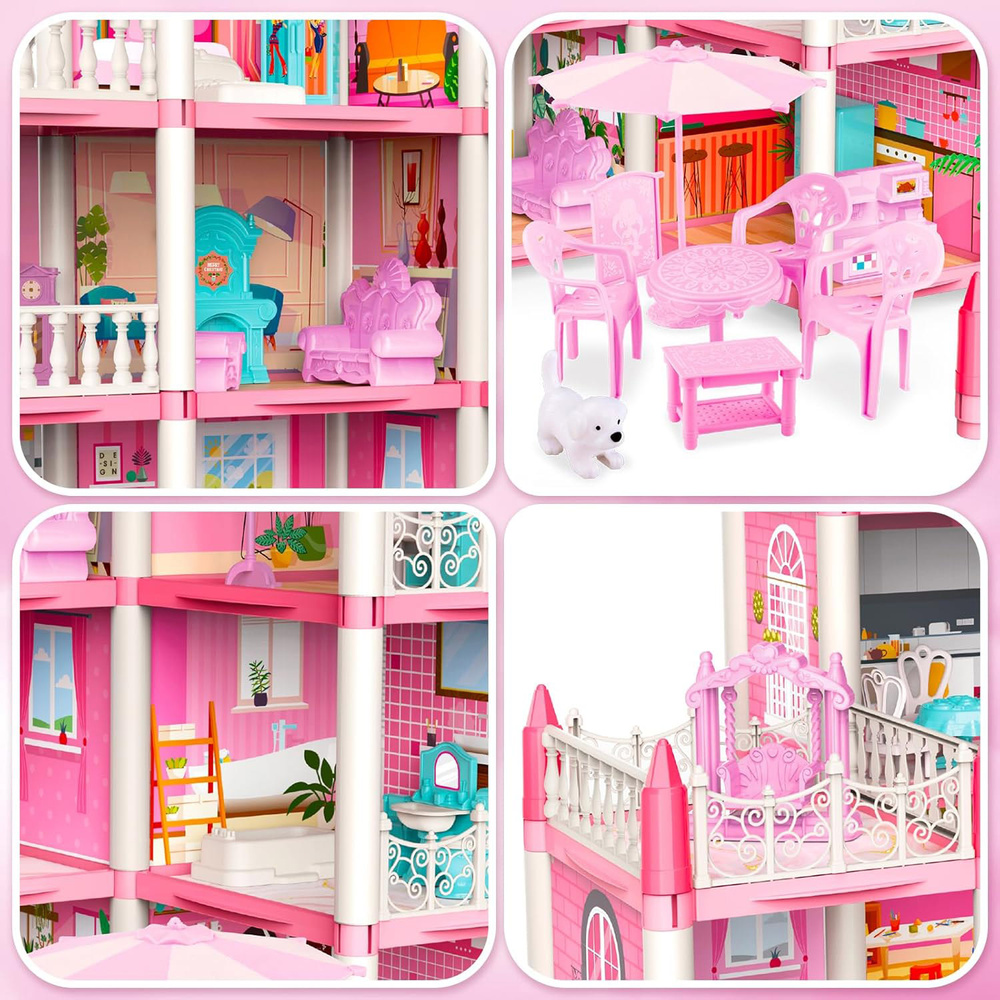 - Wyjątkowy zestaw „Domek dla lalek – 4 piętra, mebelki i akcesoria” światełka LED. Idealny prezent dla dziewczynek od 3 lat: rozbudowana zabawa, aranżacja wnętrz, rozwój kreatywności i wyobraźni.