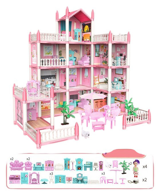 - Domek z 4 piętrami, mebelkami i akcesoriami to doskonały sposób na zabawną, twórczą i bezpieczną zabawę.
