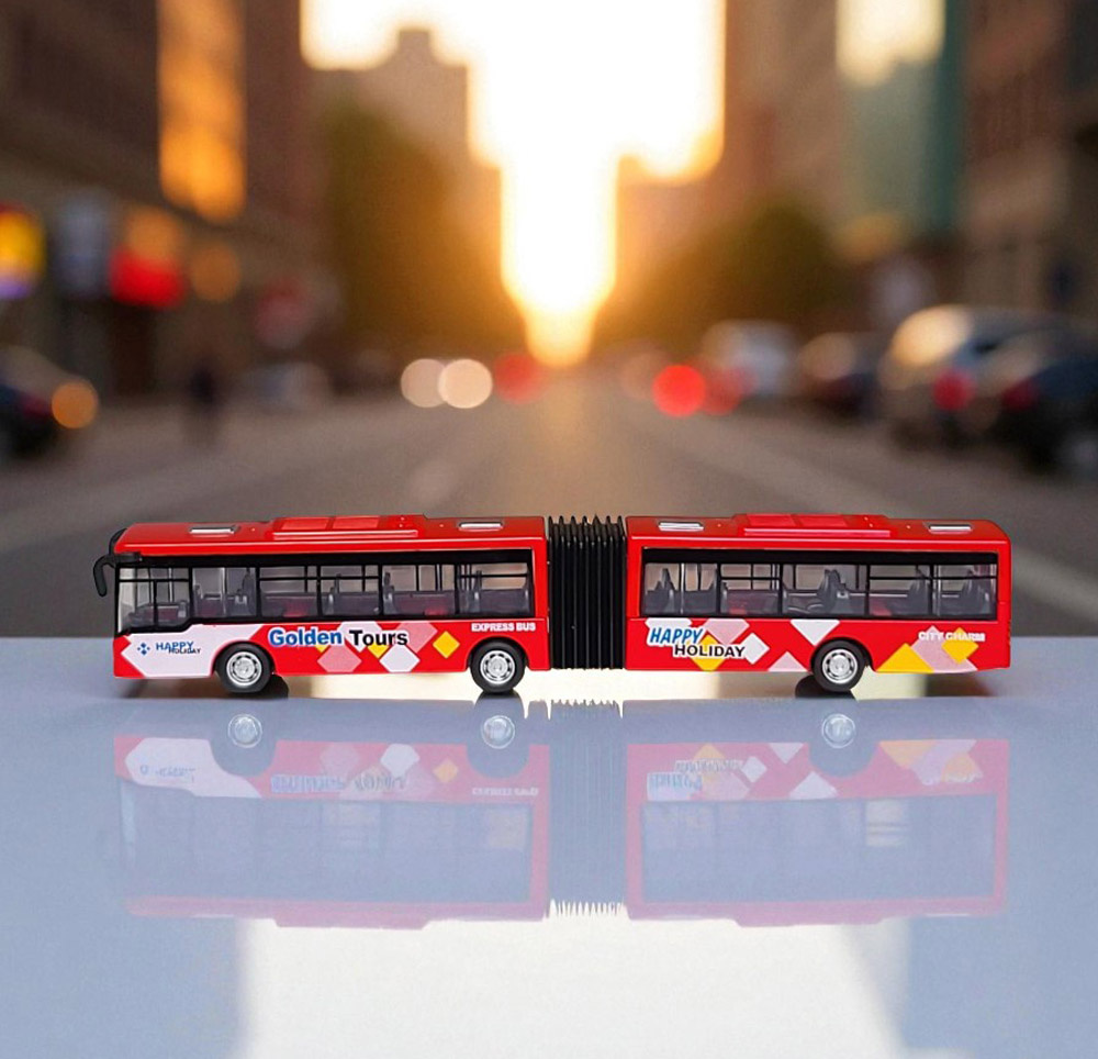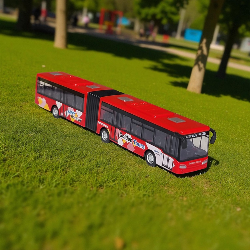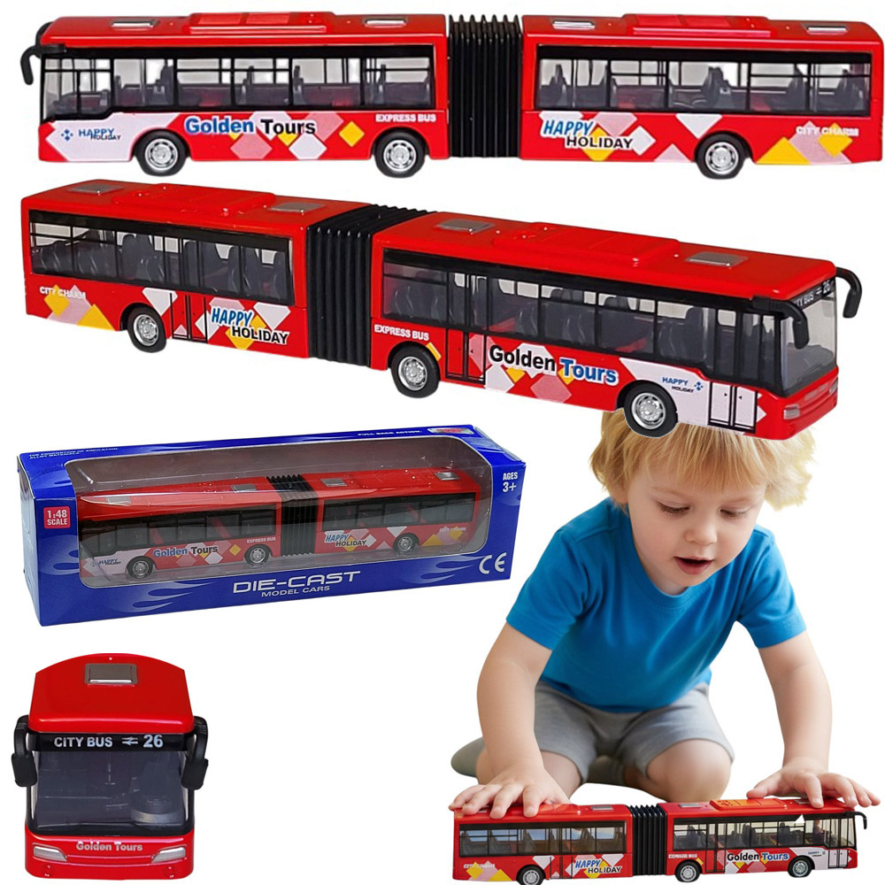 - Duży przegubowy autobus miejski 23 cm z metalu – solidna zabawka dla dzieci, rozwijająca kreatywność, idealny prezent. Metalowy korpus, realistyczny wygląd, doskonała jakość.