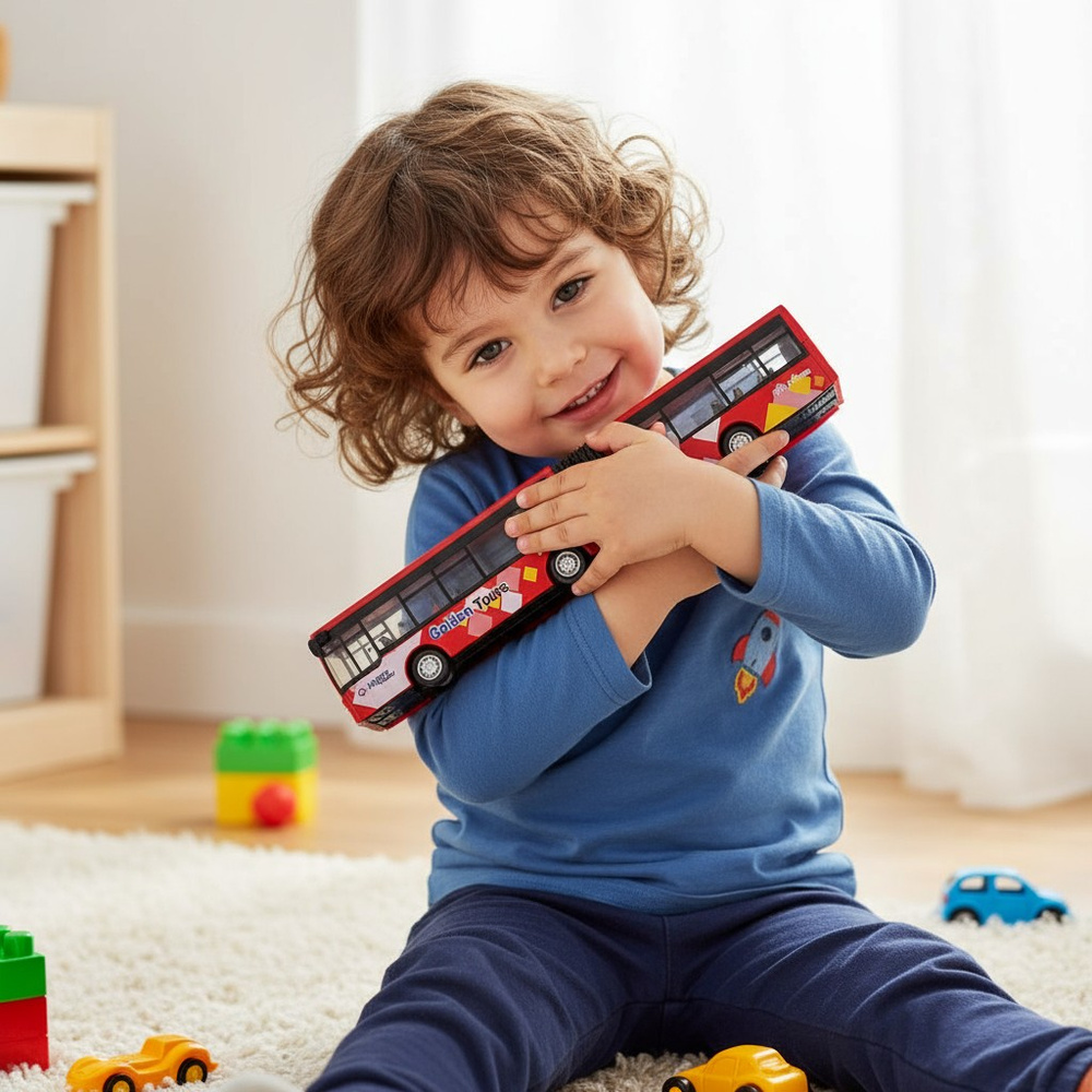 Ten duży metalowy autobus doskonale nadaje się do zabawy w odgrywanie scenek z życia miasta: przewożenie pasażerów, postoje na przystankach, jazda ulicami z innymi pojazdami. Zabawka rozwija wyobraźnię, koordynację i zdolności manualne dziecka.