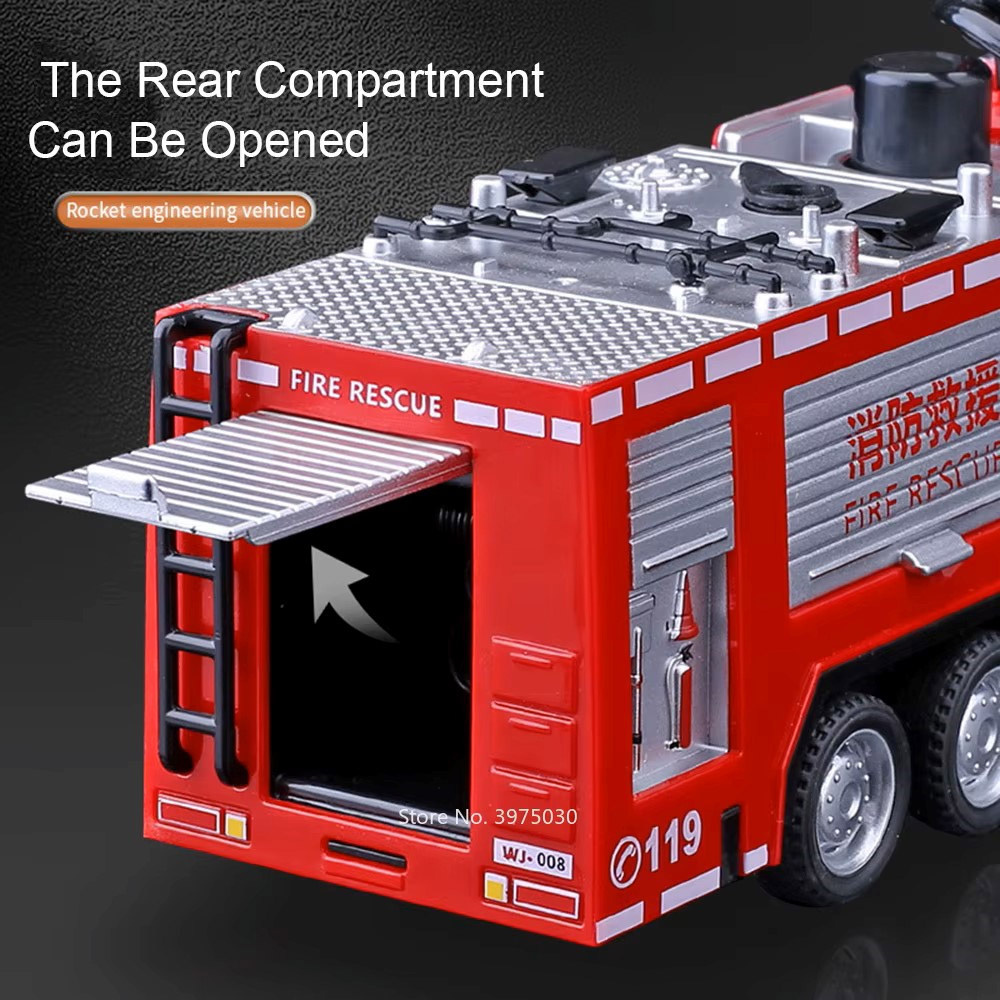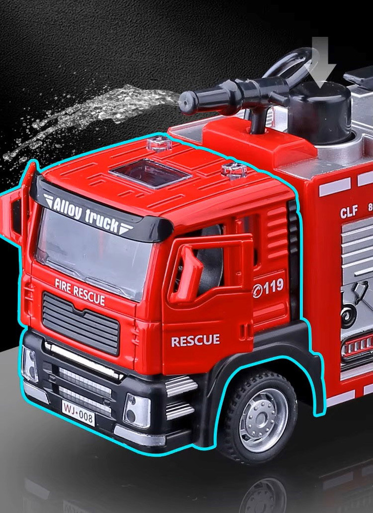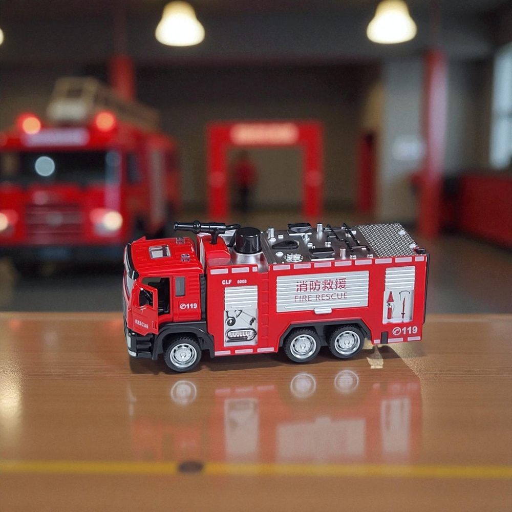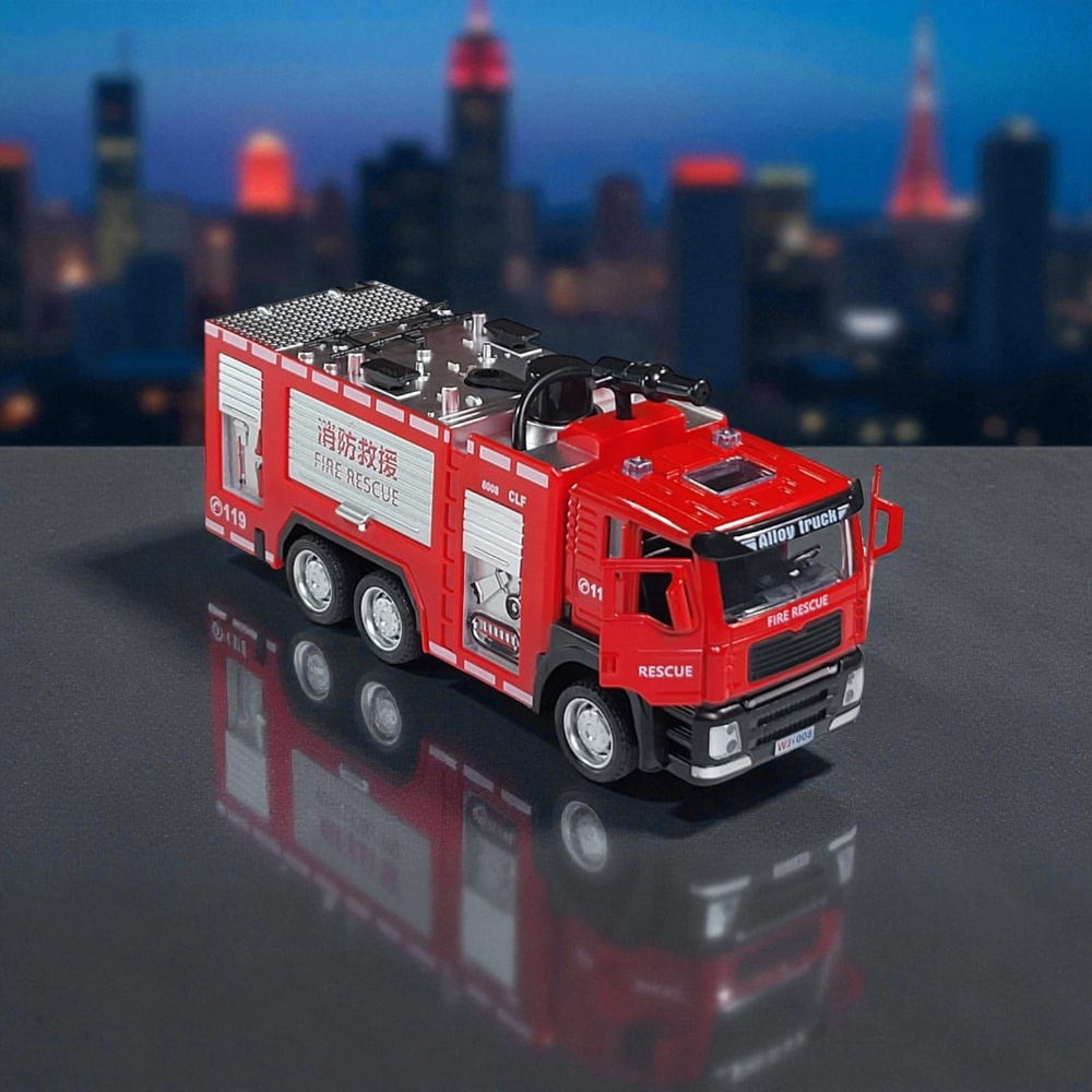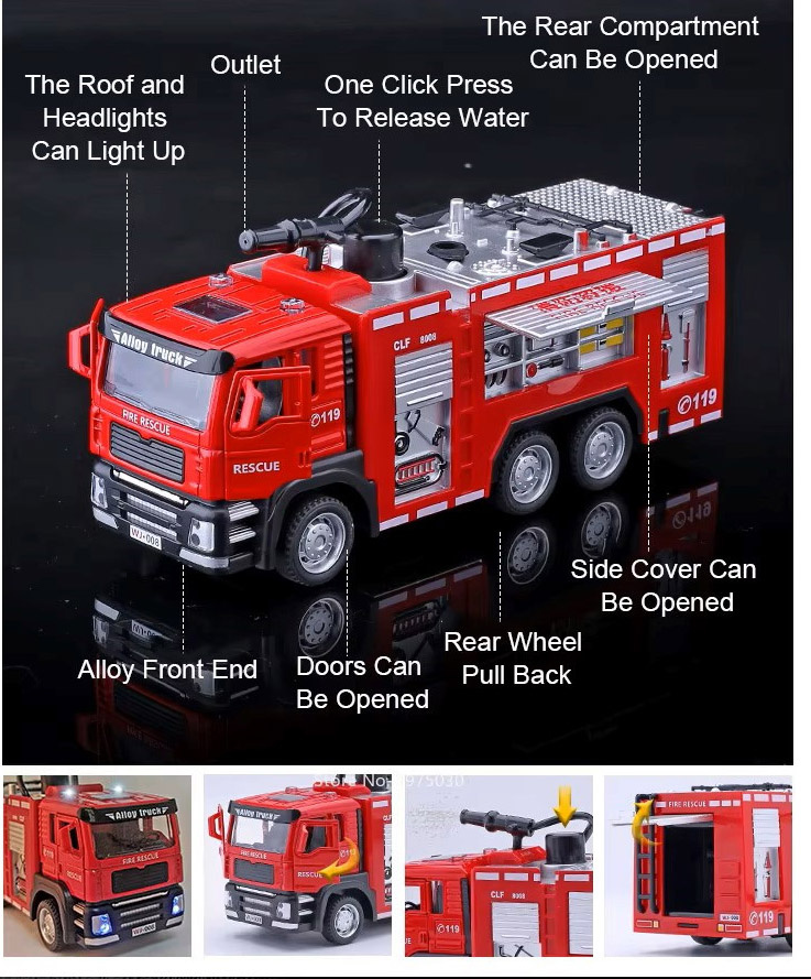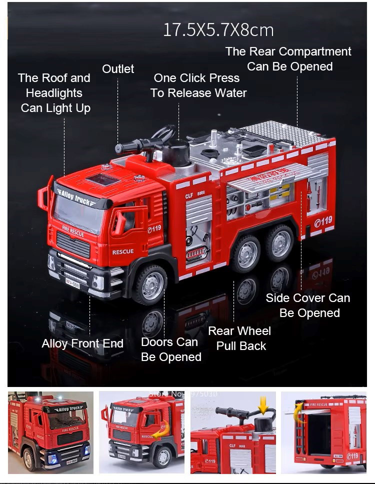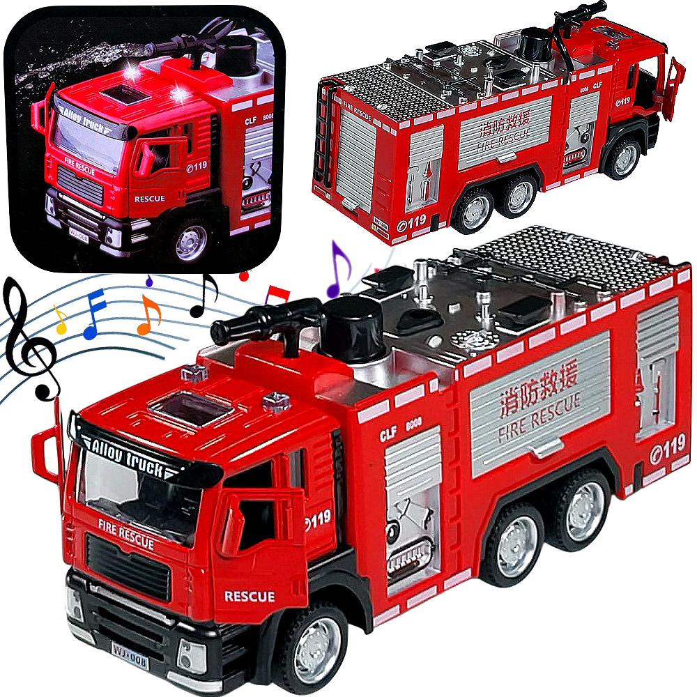 - Ten samochód strażacki 1:32 z dźwiękiem i psikanie wodą to wyjątkowa zabawka edukacyjna, kolekcjonerska i dekoracyjna w jednym. Wysoka jakość wykonania, dbałość o szczegóły i efektowny design sprawiają, że stanie się ulubionym modelem każdego małego strażaka.