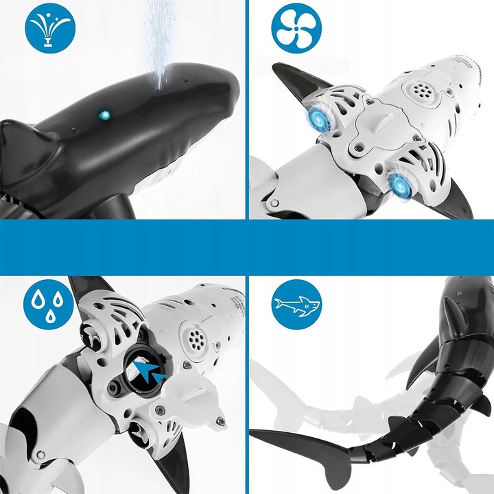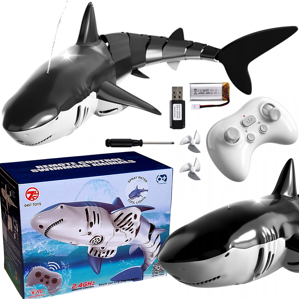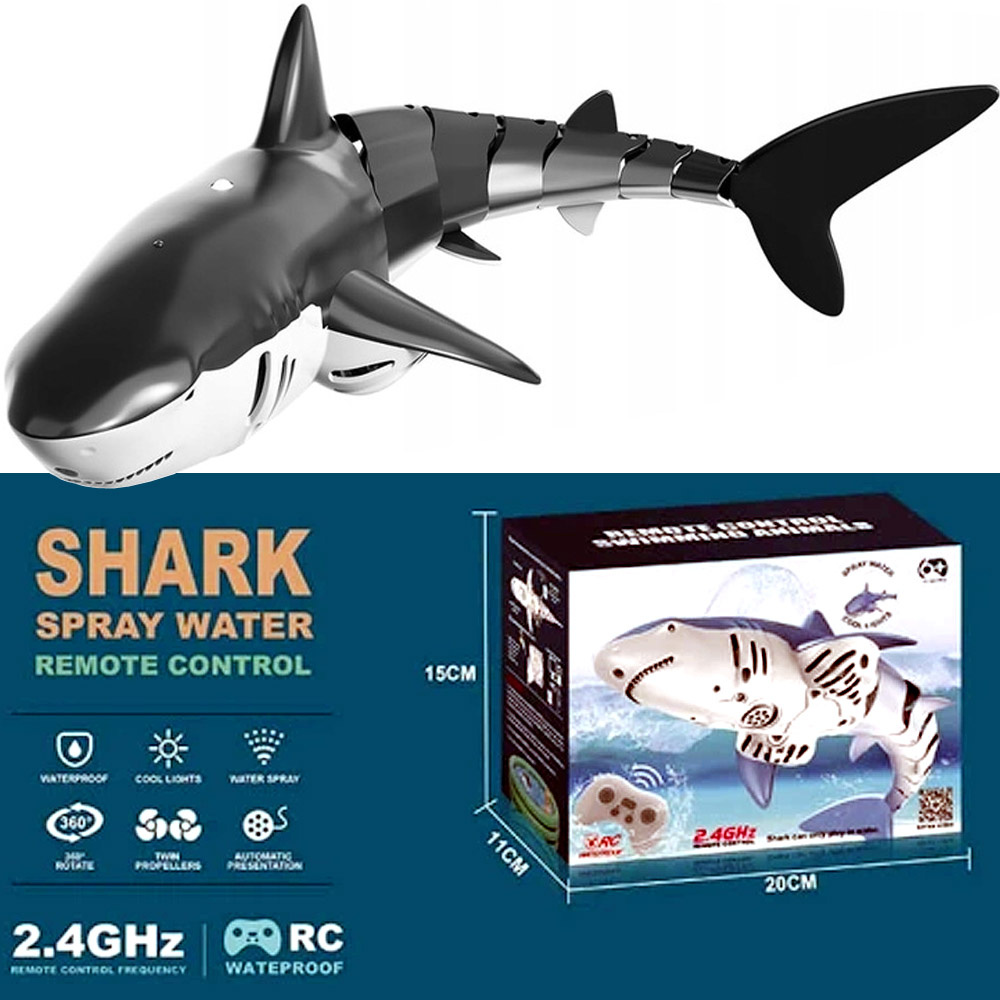 Poznaj niezwykle realistycznego rekina RC 2.4GHz – zdalnie sterowaną rybę, która porusza się, świeci i rozpyla wodę niczym prawdziwy morski drapieżnik! Ta innowacyjna zabawka wodna łączy efektowny wygląd, technologię RC oraz edukacyjną zabawę dla dzieci i dorosłych. Idealna do wanny, basenu, jeziora czy stawu.