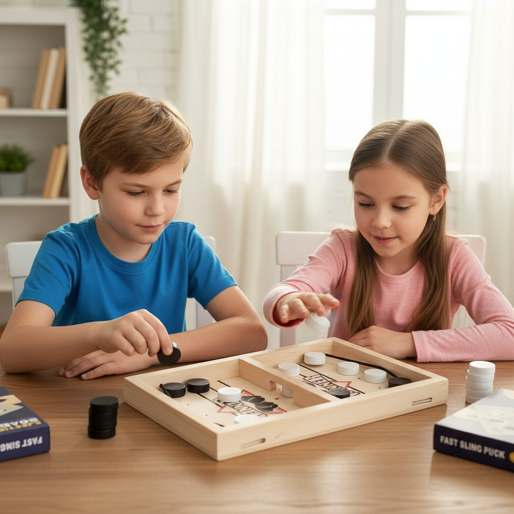 • Poznaj FAST SLING PUCK – emocjonującą grę zręcznościową Slingshot/Slingpuck dla dwóch graczy, wykonana z drewna, rozwija koordynację ręka-oko i refleks. Idealna na prezent i rodzinne wieczory.