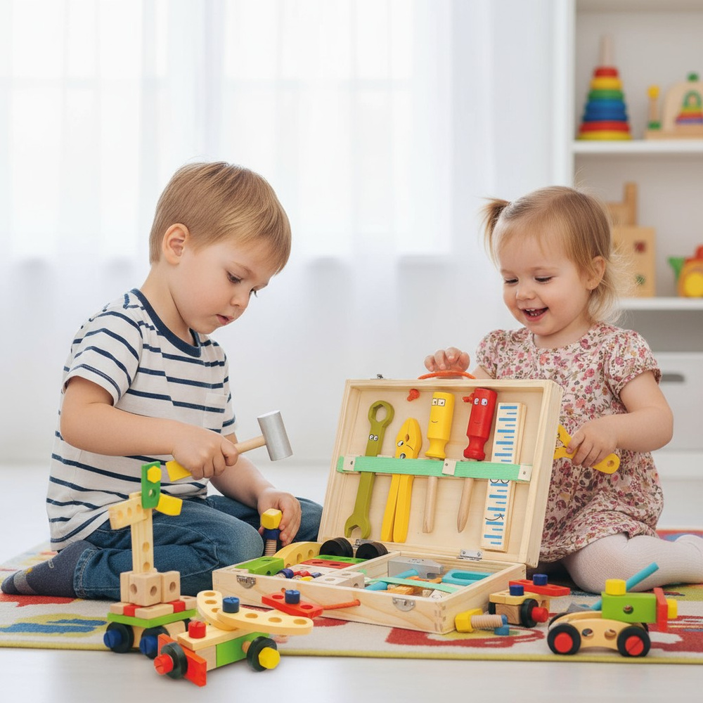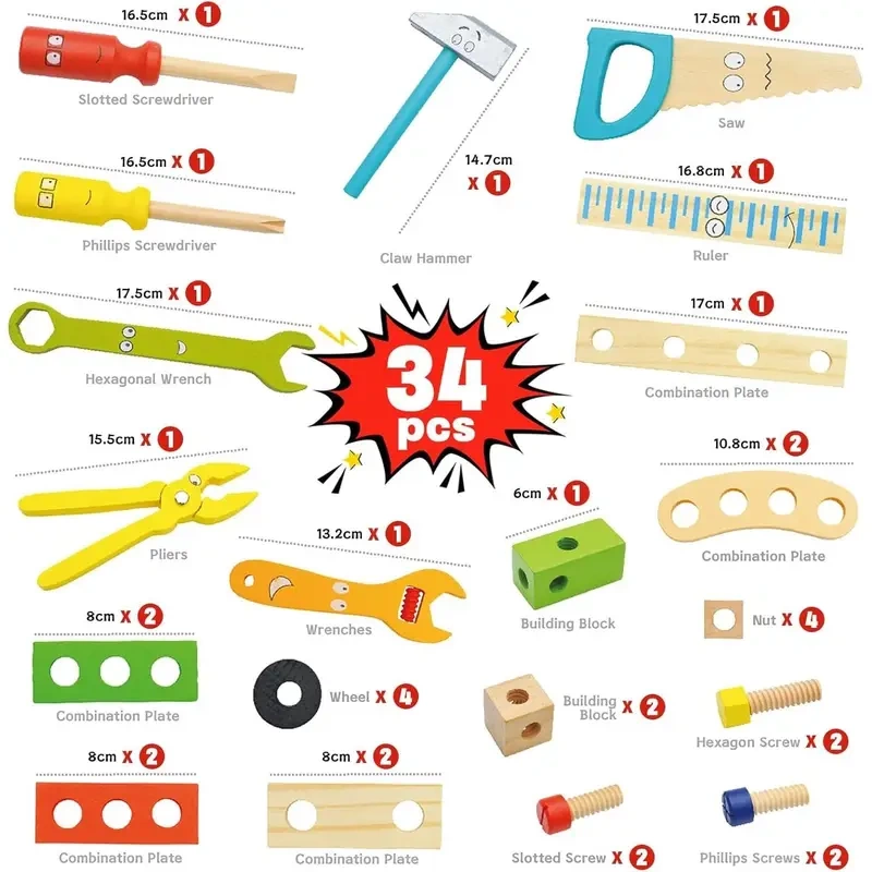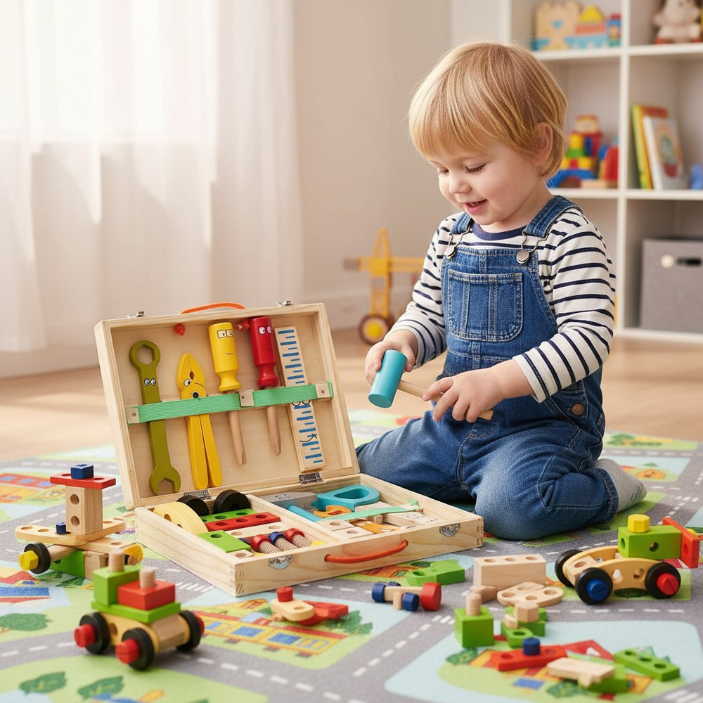 Pozwól dziecku zostać prawdziwym małym majsterkowiczem! Ten wyjątkowy zestaw drewnianych narzędzi w poręcznej walizce to połączenie zabawy, nauki i rozwoju manualnego. Zestaw wykonany z wysokiej jakości drewna, bezpiecznego dla dzieci – idealny dla przedszkolaków i małych konstruktorów.