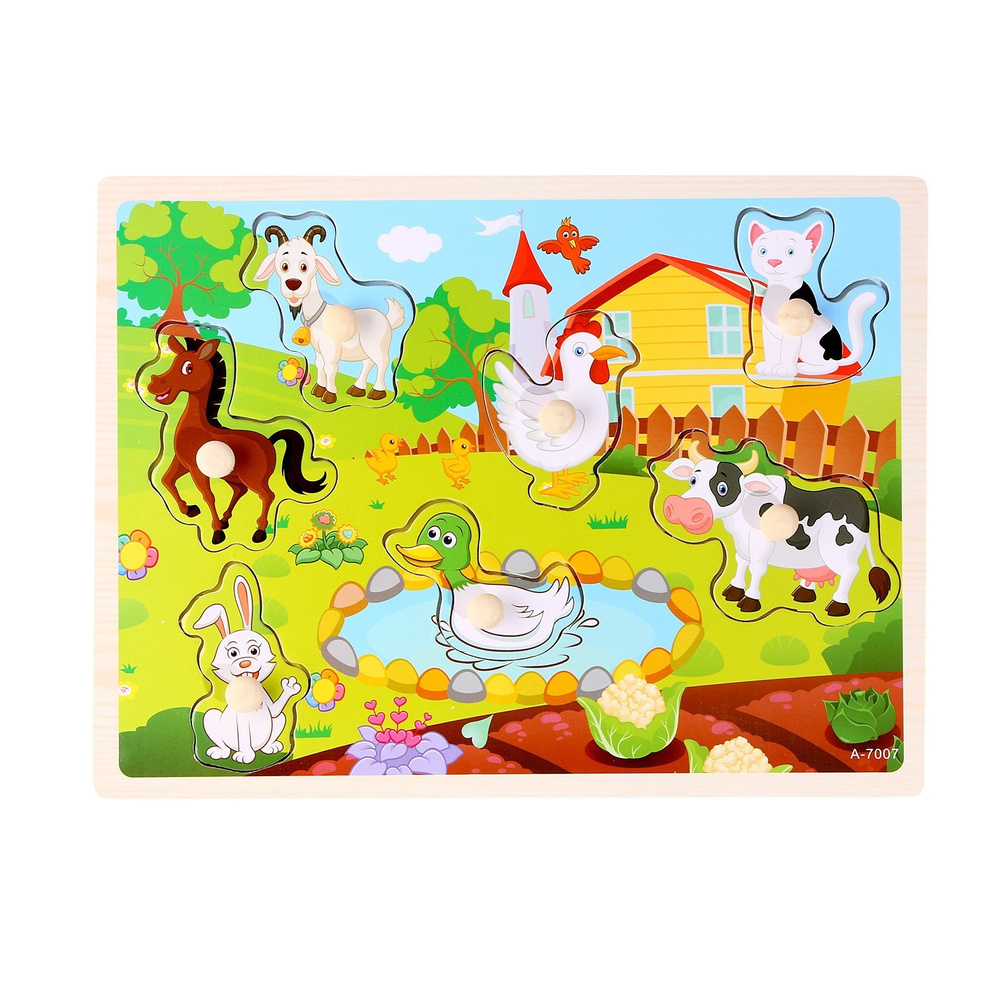 Zabawka interaktywna – drewniane klocki edukacyjne puzzle FARMA dla dzieci 3+