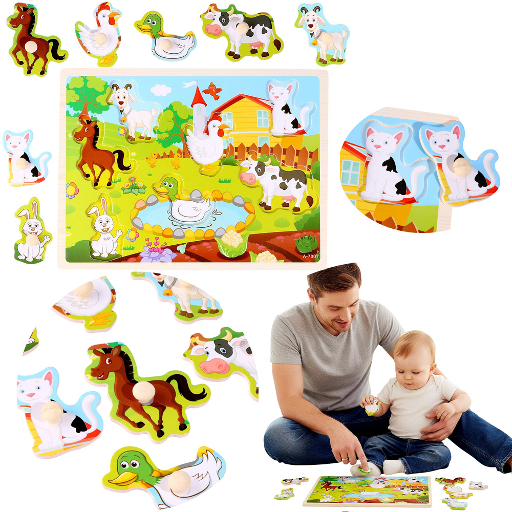 ZABAWKA INTERAKTYWNA KLOCKI DREWNIANE EDUKACYJNE DLA DZIECI PUZZLE FARMA