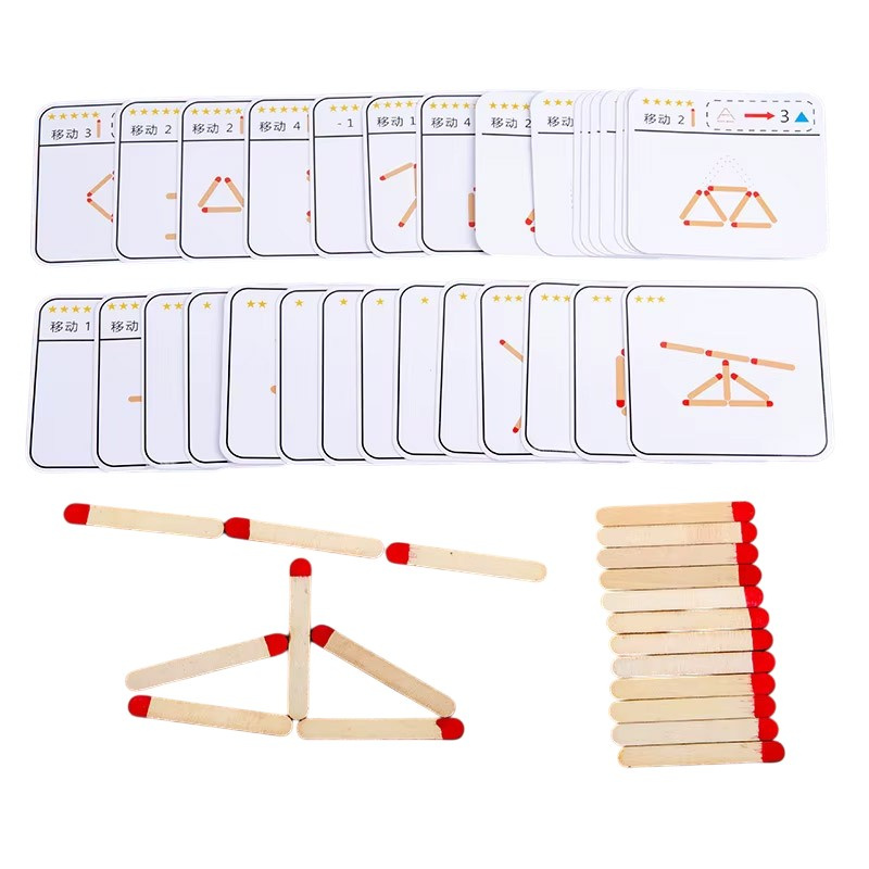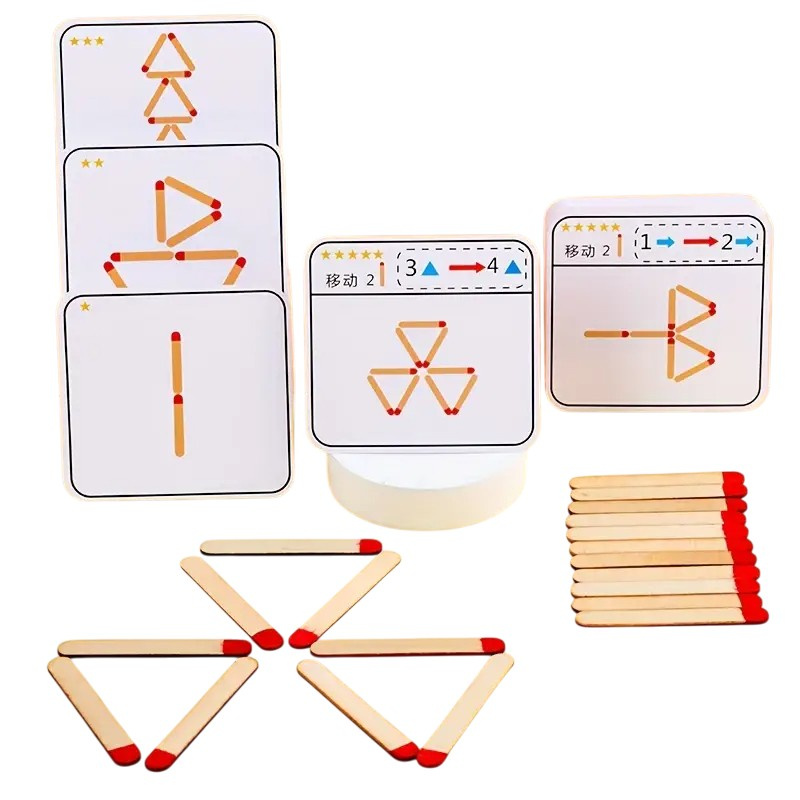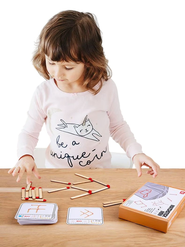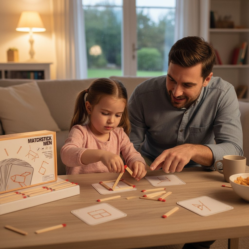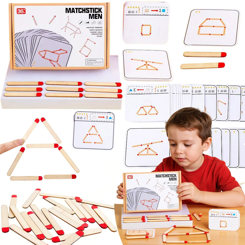 Gra Matchstick Men to zestaw logicznych łamigłówek z drewnianymi patyczkami-zapałkami, które uczą myślenia, cierpliwości i kreatywności. To doskonała zabawa edukacyjna w stylu Montessori – idealna zarówno dla dzieci, jak i dorosłych.