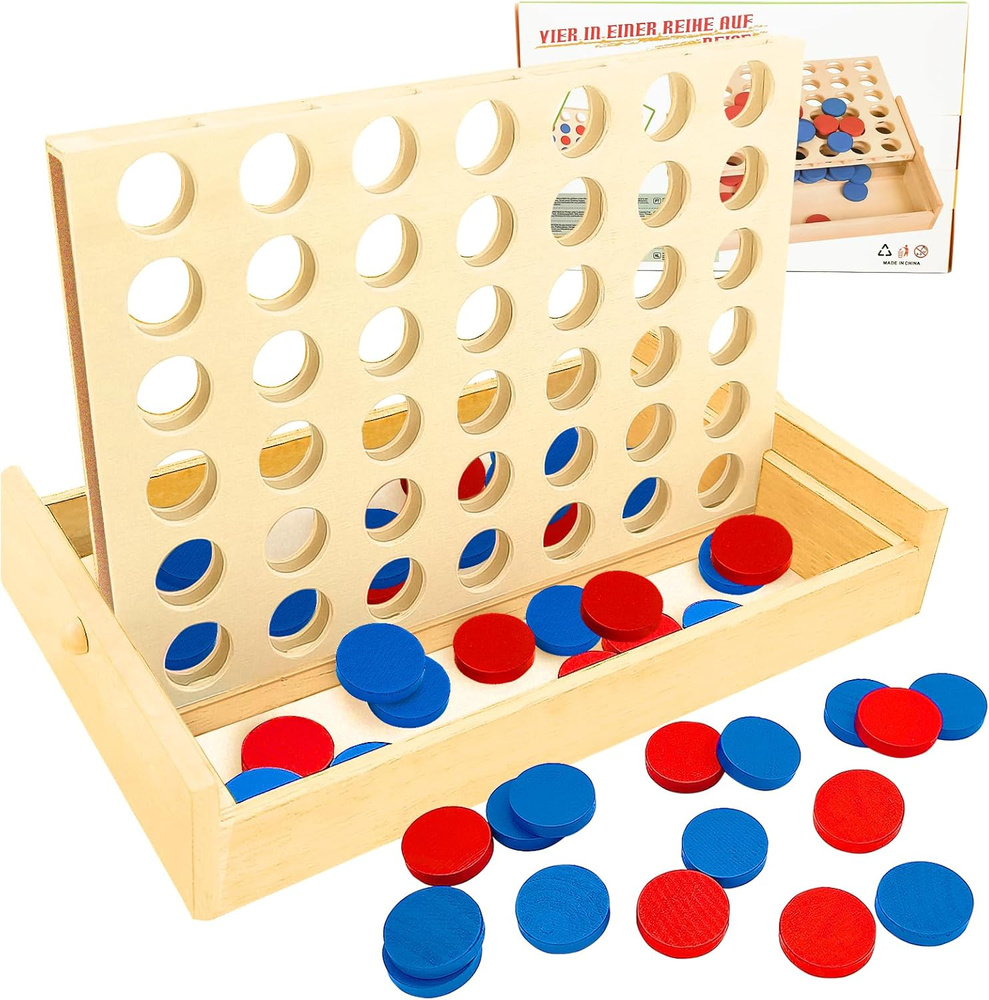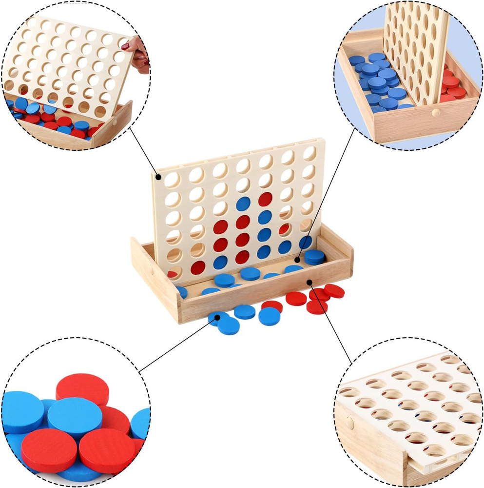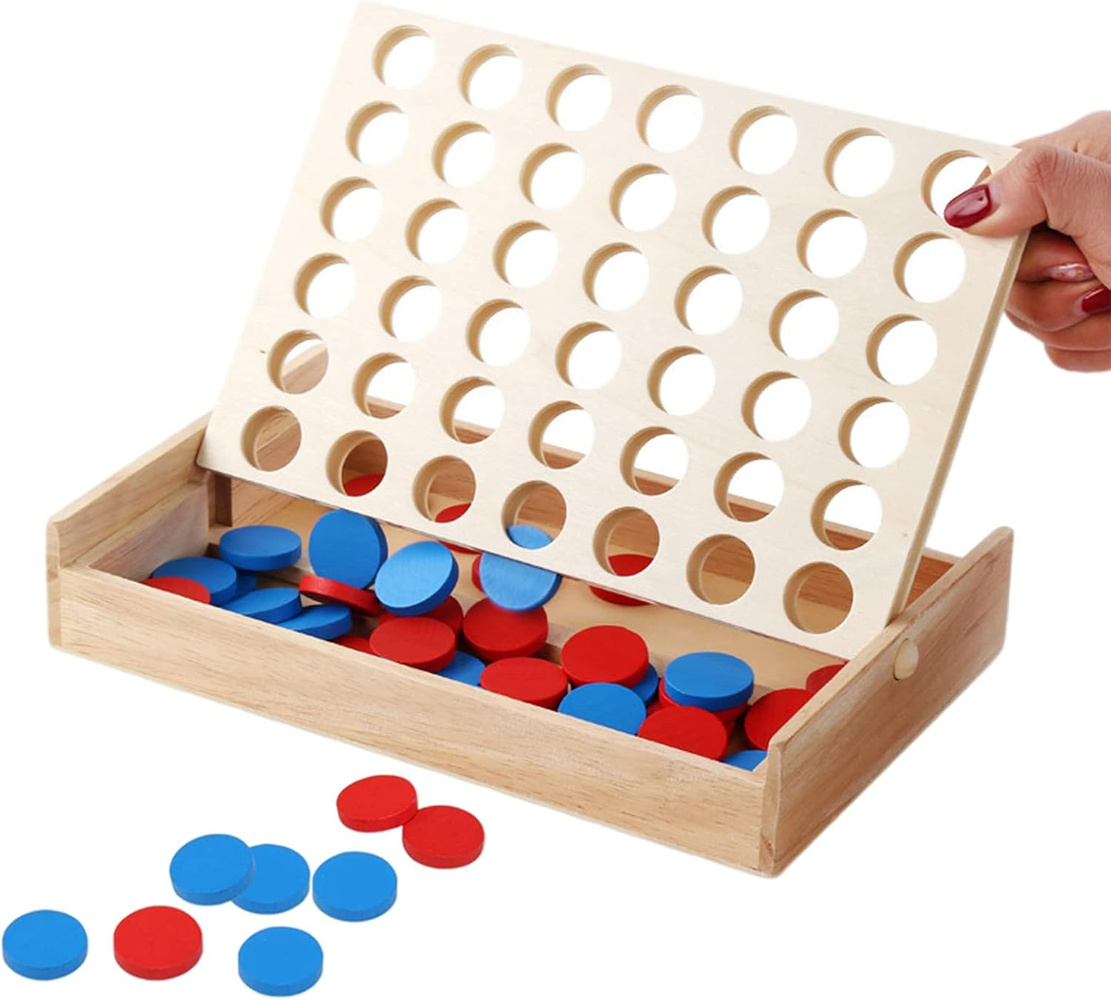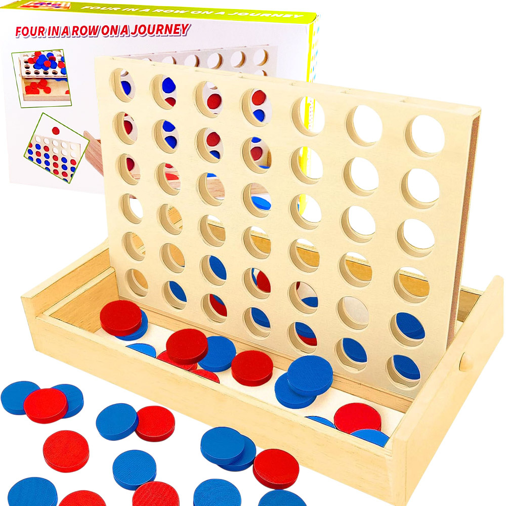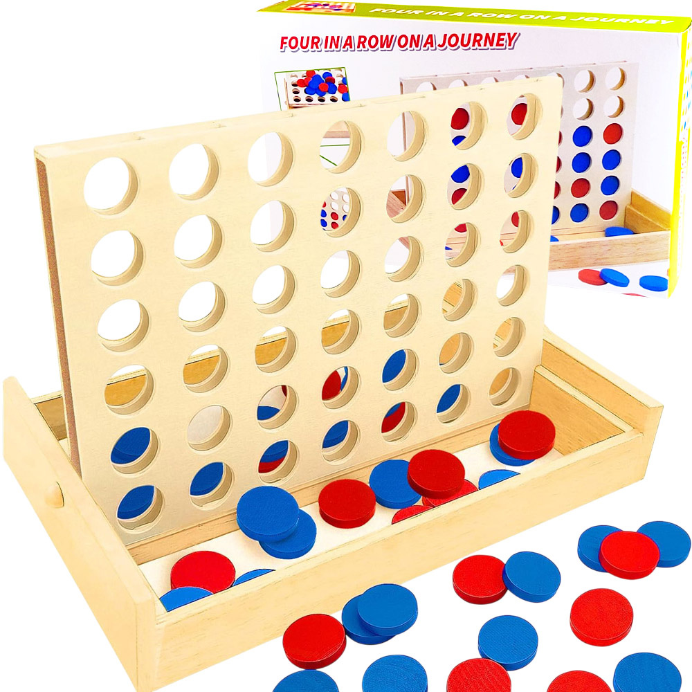 - Drewniana gra logiczna „4 w linii” (Line Up 4) – strategia i zabawa dla całej rodziny. Naturalne drewno, kolorowe żetony, rozwój logicznego myślenia i motoryki. Idealny prezent edukacyjny.