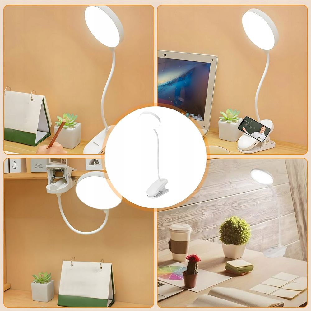 • Lampka LED bezprzewodowa do czytania na klips – idealna do biurka, pracy i nocnego czytania