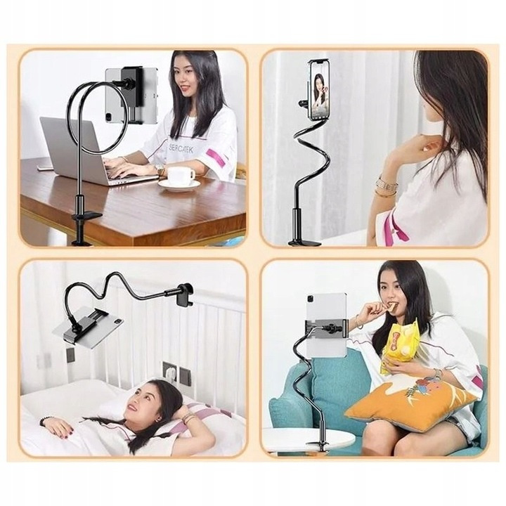 - UCHWYT NA TELEFON TABLET STOJAK STATYW ELASTYCZNY MOCNY DO ŁÓŻKA BIURKA 100