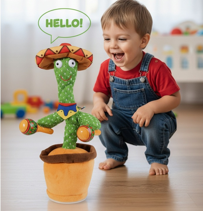 Ten zabawny kaktus nie tylko śpiewa i tańczy, ale także potrafi powtarzać wypowiadane słowa, co czyni go idealnym towarzyszem dla najmłodszych. Dzięki swojemu oryginalnemu wyglądowi i funkcjom, kaktus szybko stanie się ulubioną zabawką każdego dziecka.