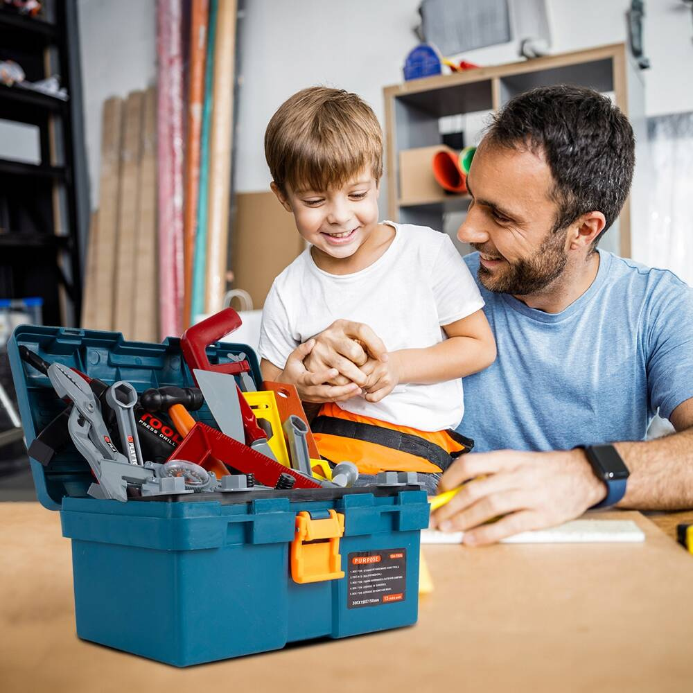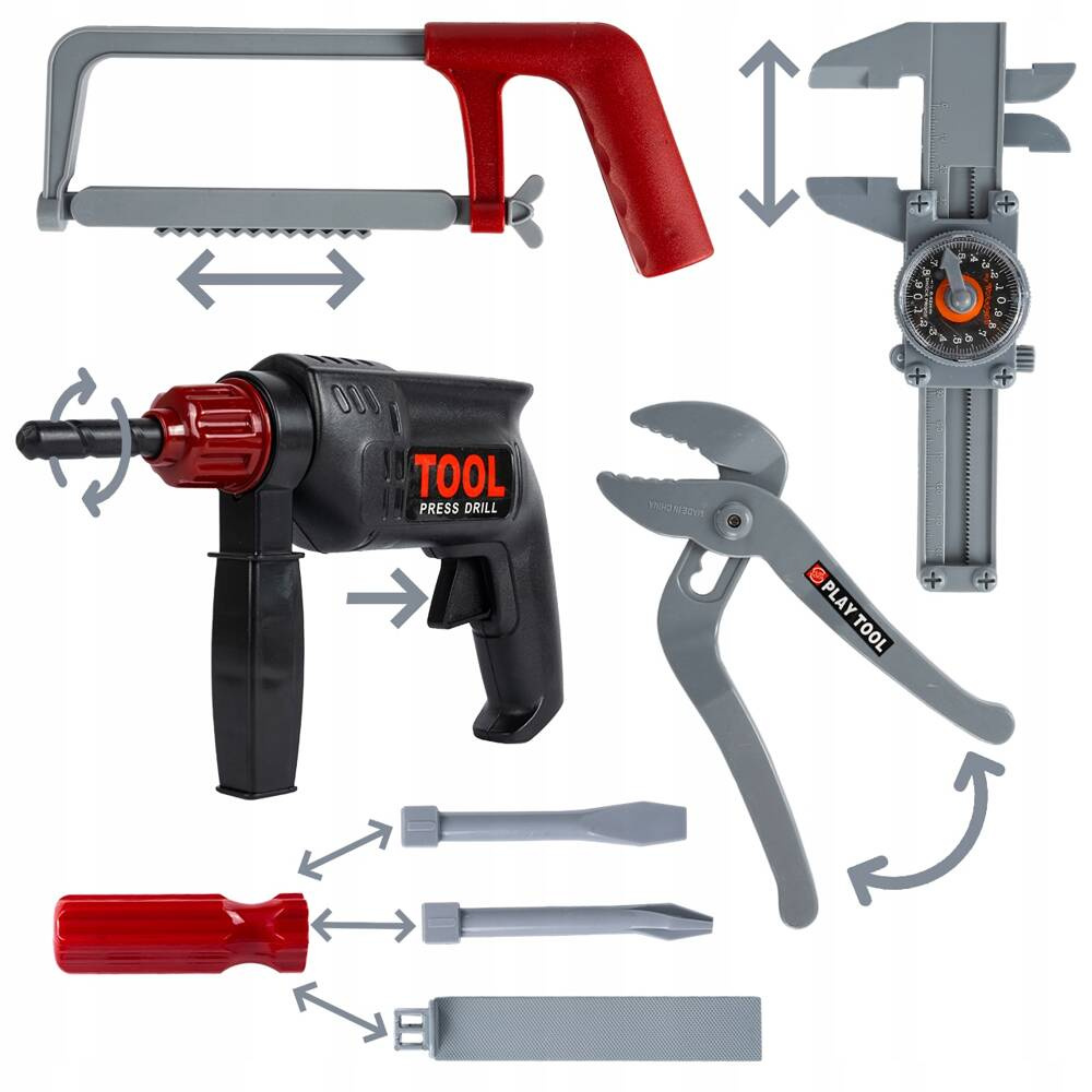 Dzięki zabawie dziecko rozwija nie tylko umiejętności manualne, ale także zdolność kreatywnego myślenia i wyobraźnię. To doskonała zabawka edukacyjna dla naszych najmłodszych milusińskich. Narzędzia zamknięte w profesjonalnej skrzynce narzędziowej, sprawią że Twoje dziecko poczuje się jak prawdziwy majsterkowicz.