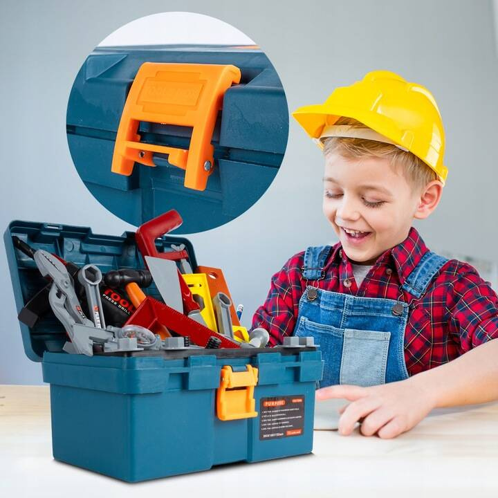 Dzięki skrzyni z narzędziami, dziecko od małego będzie mogło używać pojęć takich jak klucz francuski, szpachelka, klucz nasadowy, suwmiarka. kątownik, poziomica!